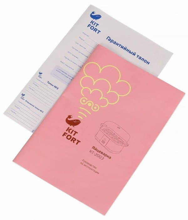 Инструкция к яйцеварке представляет собой черно-белую брошюру с цветной обложкой, отпечатанную на качественной глянцевой бумаге. Содержание брошюры довольно стандартно: тут можно получить общие сведения о приборе, ознакомиться с его устройством, особенностях подготовки к работе и использовании, а также узнать все, что касается чистки, ухода и хранения яйцеварки.