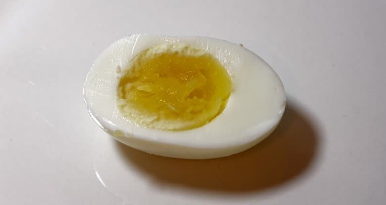 Яйца сварились полностью, желток оказался твердым и рассыпчатым.