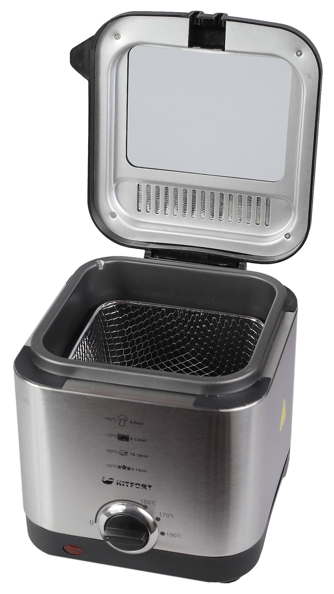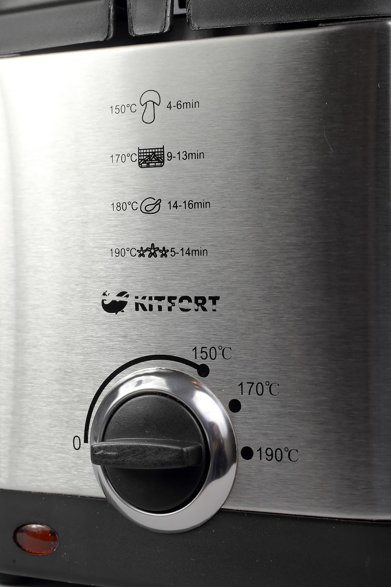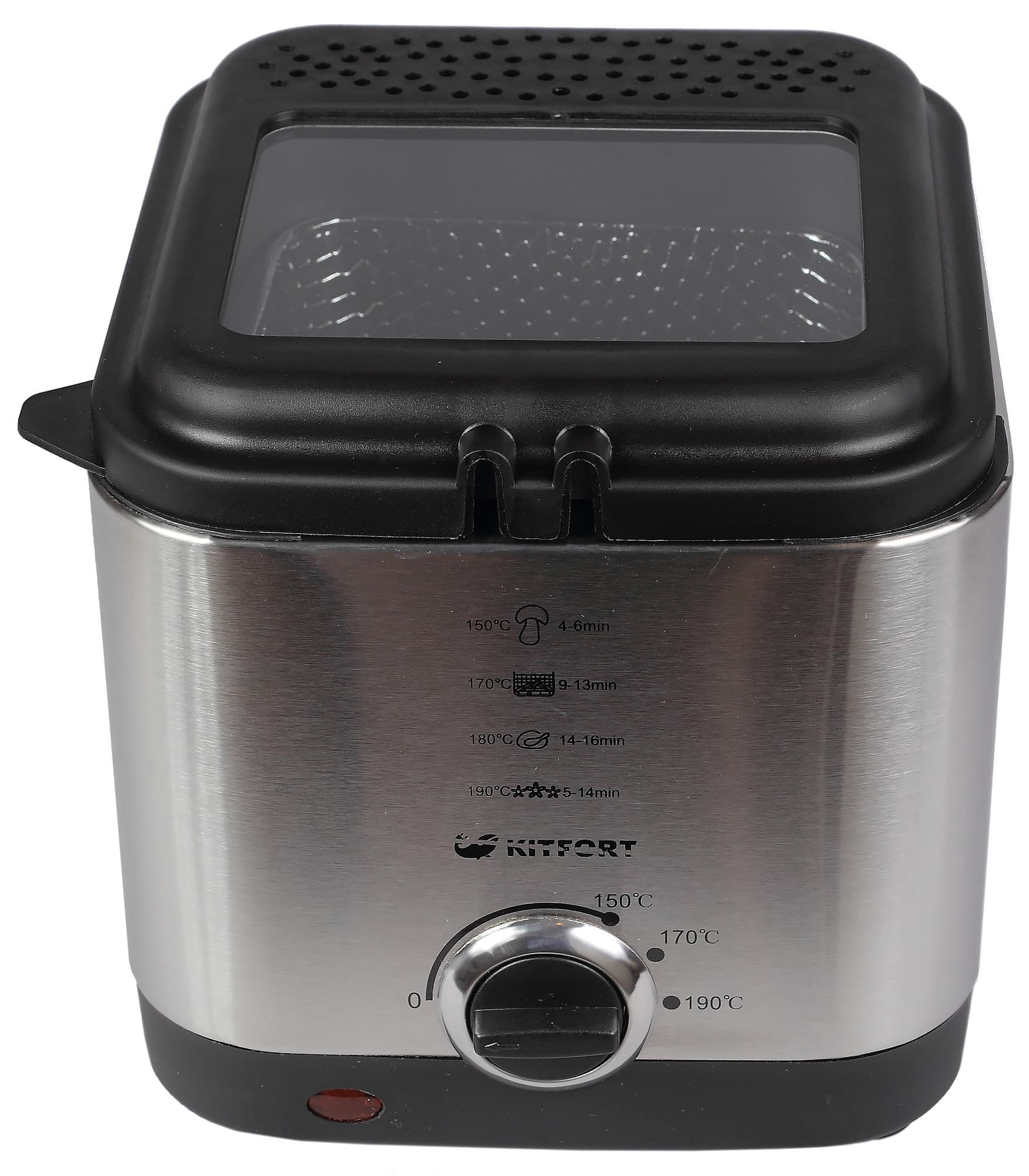 С управлением фритюрницей Kitfort KT-2017 справится и ребенок, хотя без присмотра взрослых детей лучше не допускать к работе с горячим маслом. Для того чтобы прибор начал нагрев, нужно всего лишь установить терморегулятор напротив отметки нужной температуры.