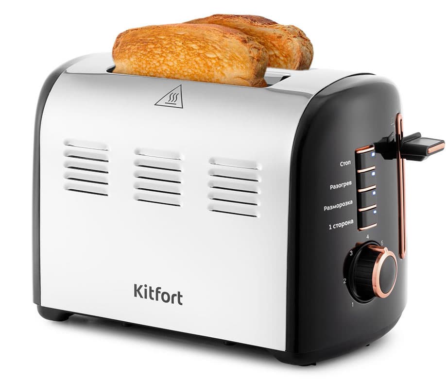 Тостер Kitfort KT-2037 хорошо справляется со своими основными обязанностями, то есть с быстрой обжаркой разных видов хлеба. У него и опции дополнительные есть — за счет одностороннего режима, — и степеней прожарки на одну больше, чем в других тостерах. Да и выглядит он приятно.