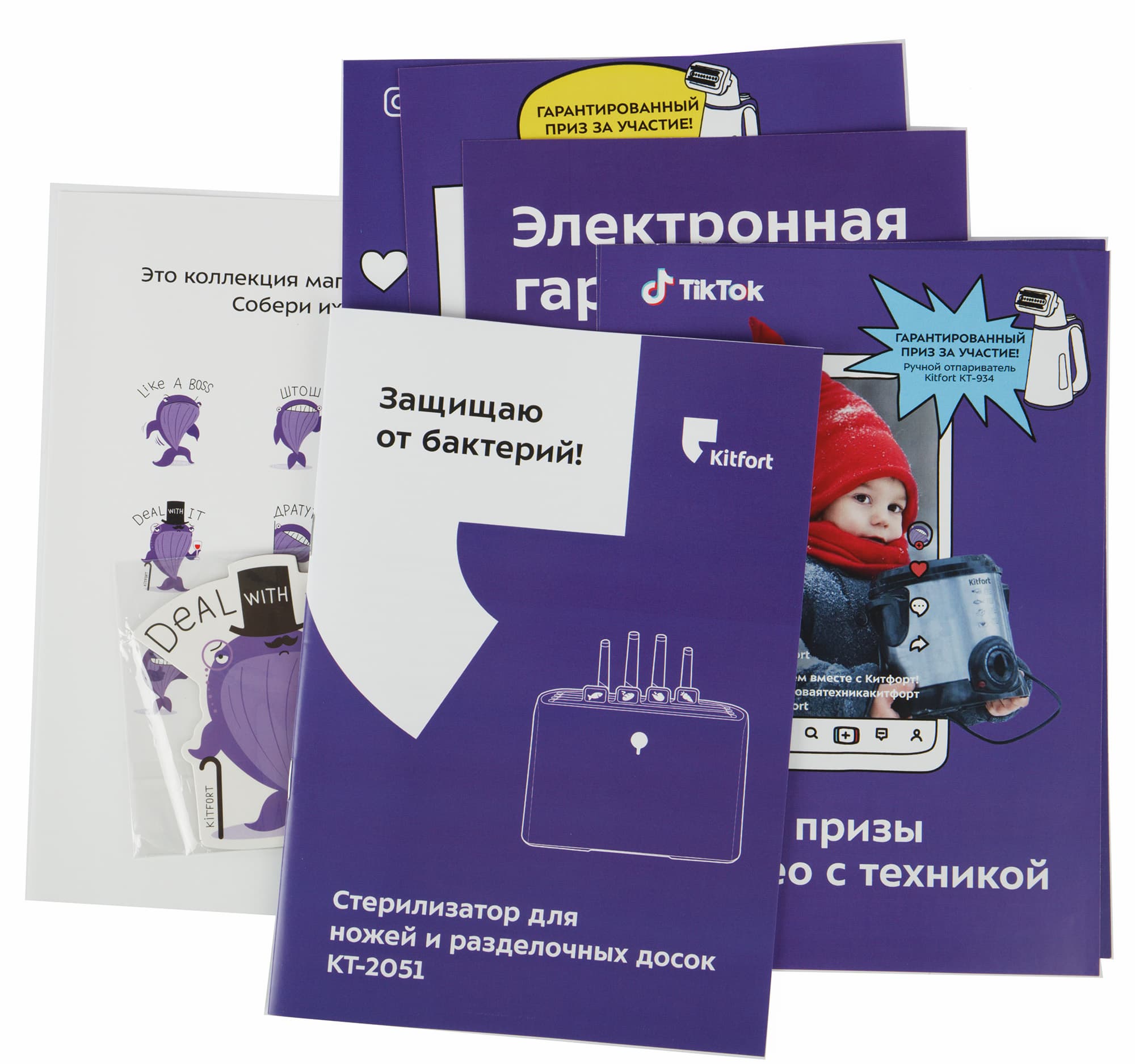 Среди рекламных листовок наше внимание привлекла информация об электронной гарантии: по QR коду можно воспользоваться круглосуточной техподдержкой и получить ответы на вопросы о товаре в фирменном приложении от Kitfort. Таким образом, однажды отсканировав код с чека или запросив его в магазине в электронном виде, можно избежать визитов или звонков в сервисные центры, если всего лишь нужен оперативный ответ на вопрос или уточнение по техническим характеристикам прибора.