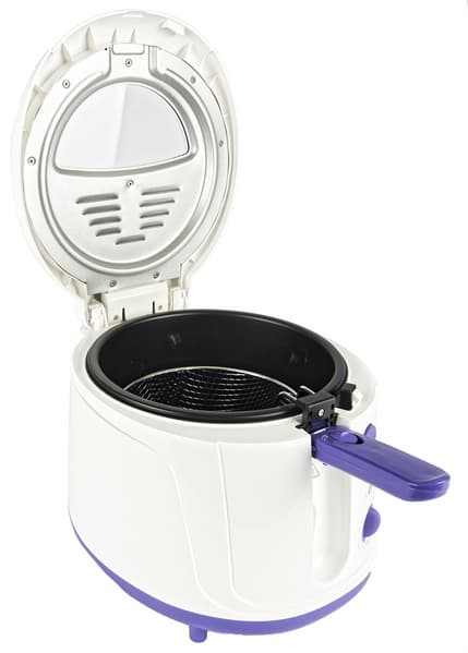 Устройство фритюрницы включает корзину со складывающейся ручкой, съемную крышку со смотровым окном и вентиляционной решеткой с фильтрами, препятствующими сильному распространению запаха продуктов при приготовлении. Продукты можно погружать в масло уложенными в корзину объемом 1,8 л или поместить их прямо в чашу, полезный объем которой равняется 2,5 л.