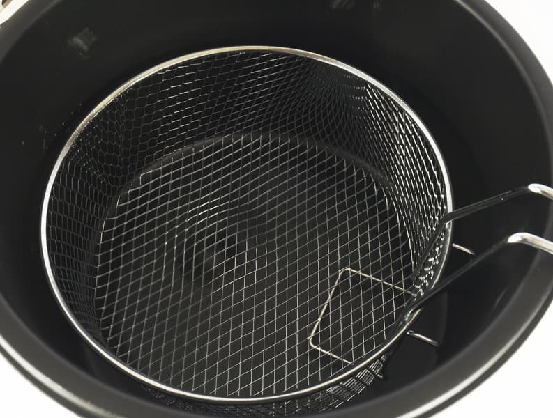 В процессе работы корпус фритюрницы нагревается максимум до 40 градусов, а крышка и ручка корзины остаются холодными.
