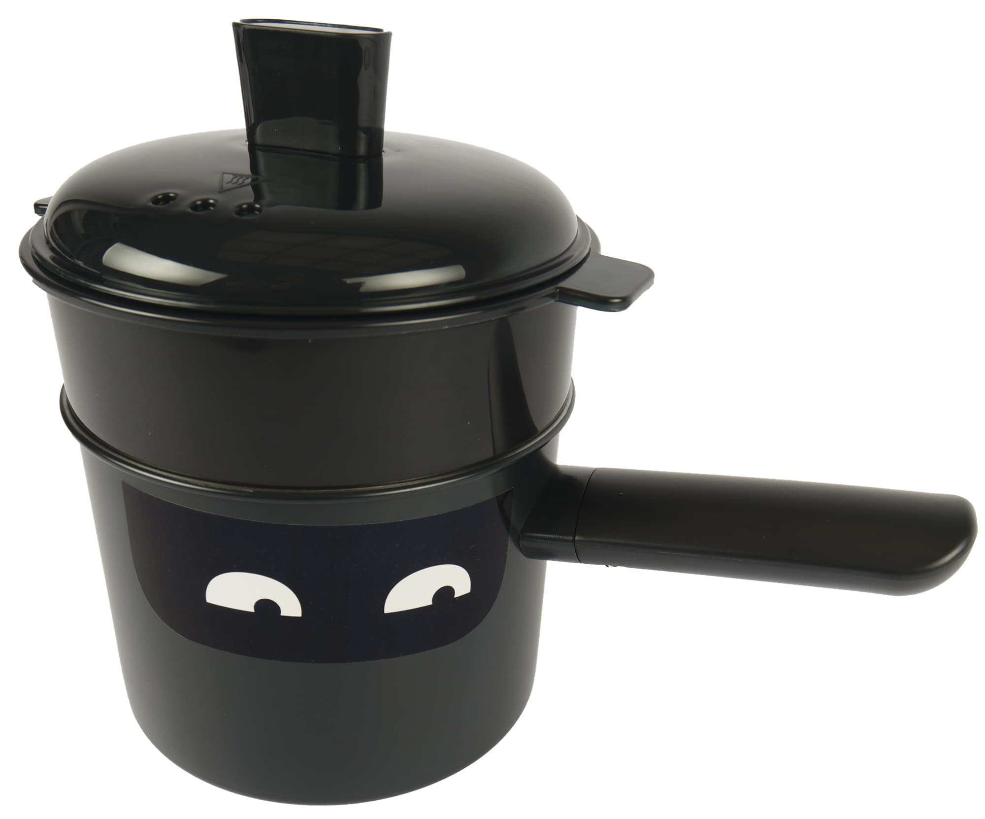 Внутри емкости есть риска с обозначением максимально допустимого уровня воды в случае использования кастрюли как пароварки — 600 мл. Объем кастрюли наполненной до краев равен 1,2 л. Накрывается кастрюля пластиковой крышкой с тремя дырочками.