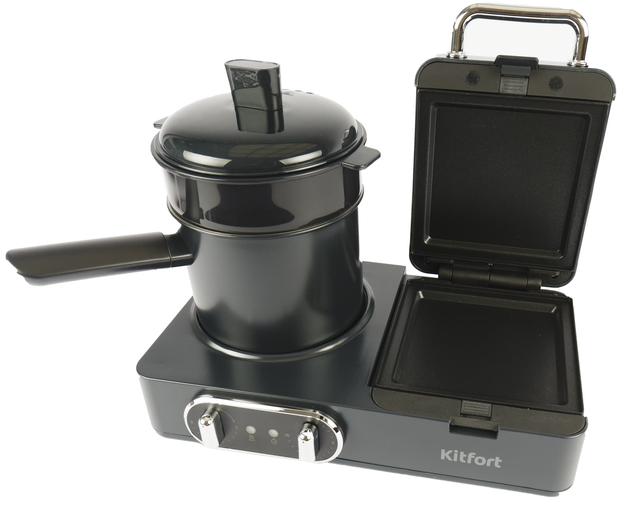 Плитка-гриль Kitfort КТ-2076 — простой и недорогой прибор, совмещающий в своем корпусе скромного размера конфорку и мини-гриль с тремя комплектами сменных панелей: для вафель, гриля и горячих бутербродов. В ходе тестирования мы проверим возможности устройства и выясним, насколько оно эффективно и удобно в использовании.