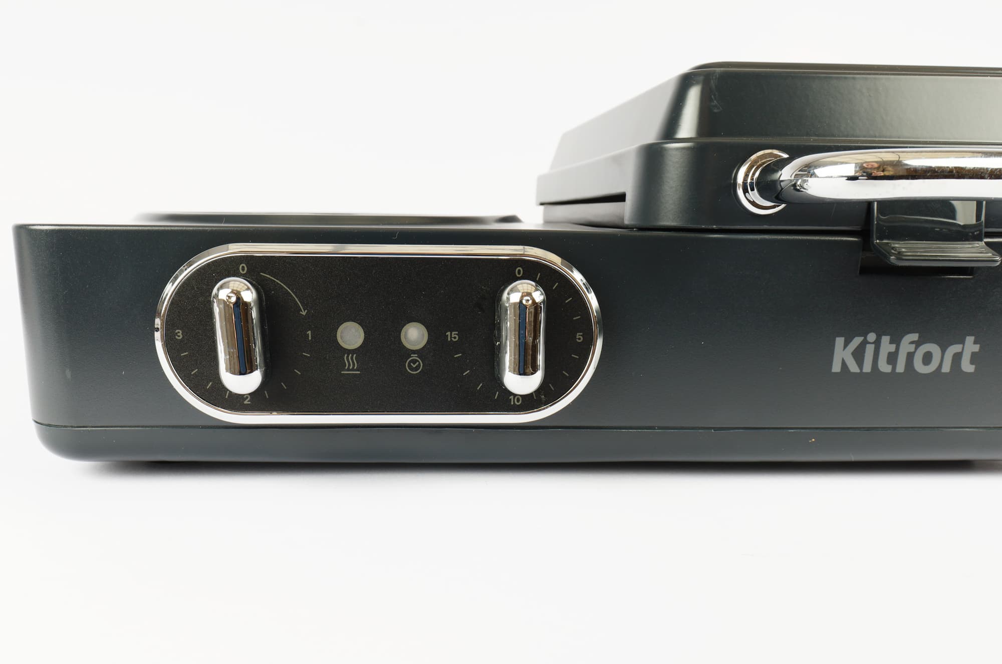 Плитка-гриль Kitfort КТ-2076 управляется двумя механическими переключателями.