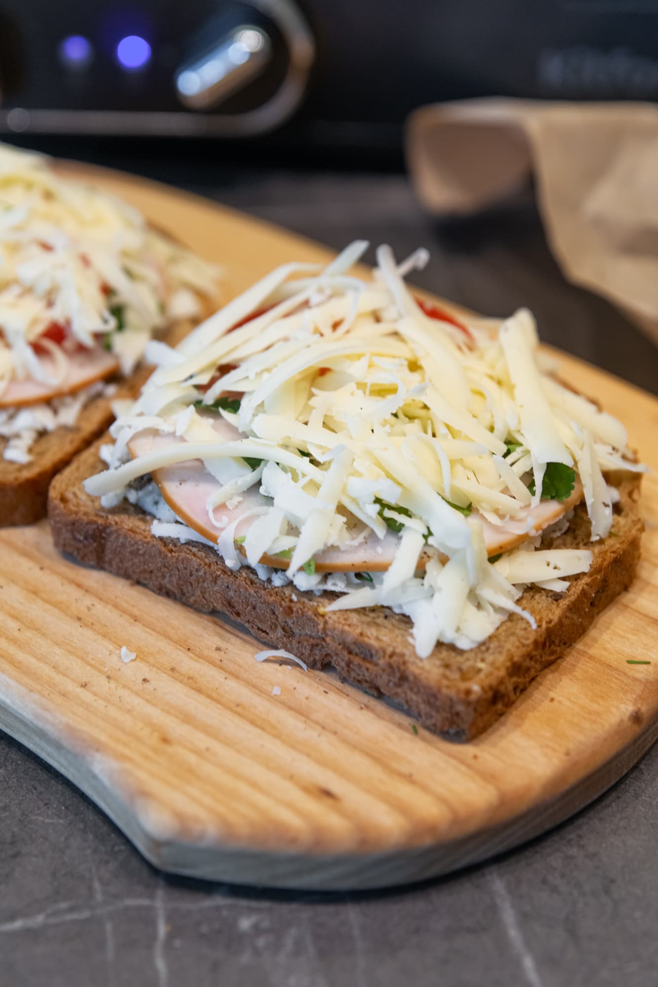 Накрыли еще одним куском хлеба и отправили в разогретый гриль.