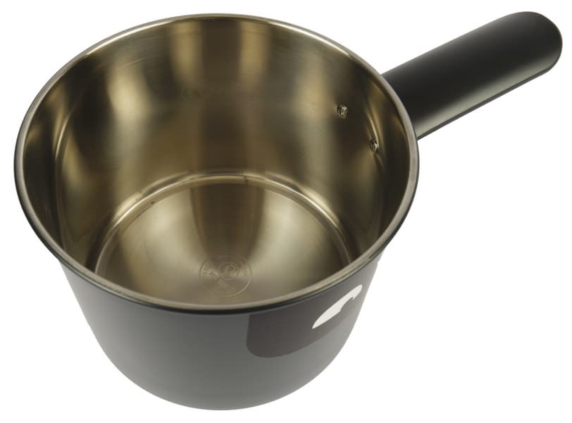 Для конфорки в комплекте предусмотрена небольшая кастрюля, а точнее ковшик из нержавеющей стали с удобной широкой ручкой из пластика.