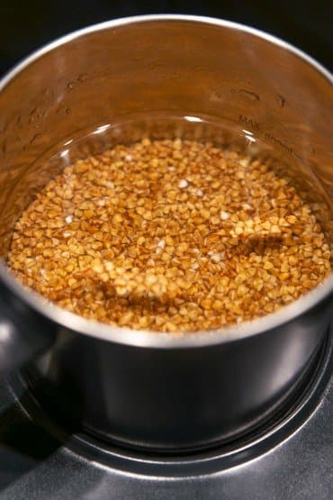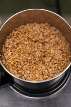 Каша остановилась в росте ровно за сантиметр до вставки-пароварки, так что они друг другу не мешали. Оба продукта приготовились одновременно. Ко дну ковша ничего не прилипло, каша получилась рассыпчатой.