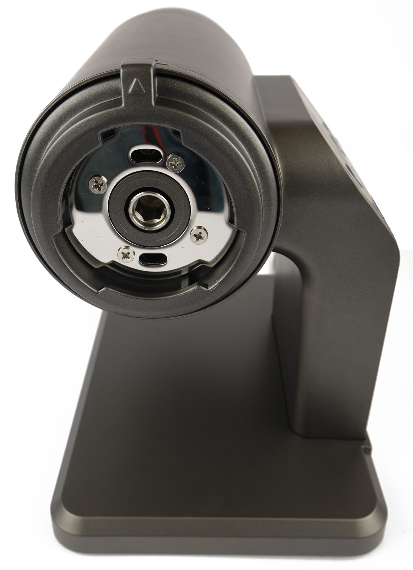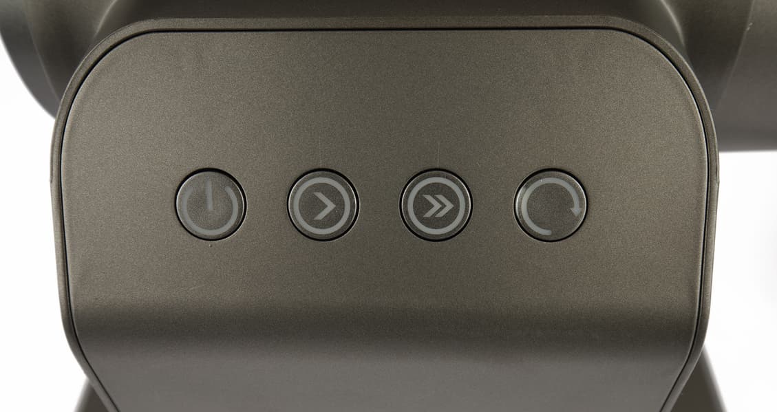 Электронная панель управления представлена четырьмя кнопками и понятна интуитивно. Прибор включается нажатием на кнопку питания, две кнопки посередине отвечают за скорость работы. Справа — кнопка реверса. Ее не нужно удерживать: после нажатия на кнопку режим реверса запустится на несколько секунд и отключится автоматически.