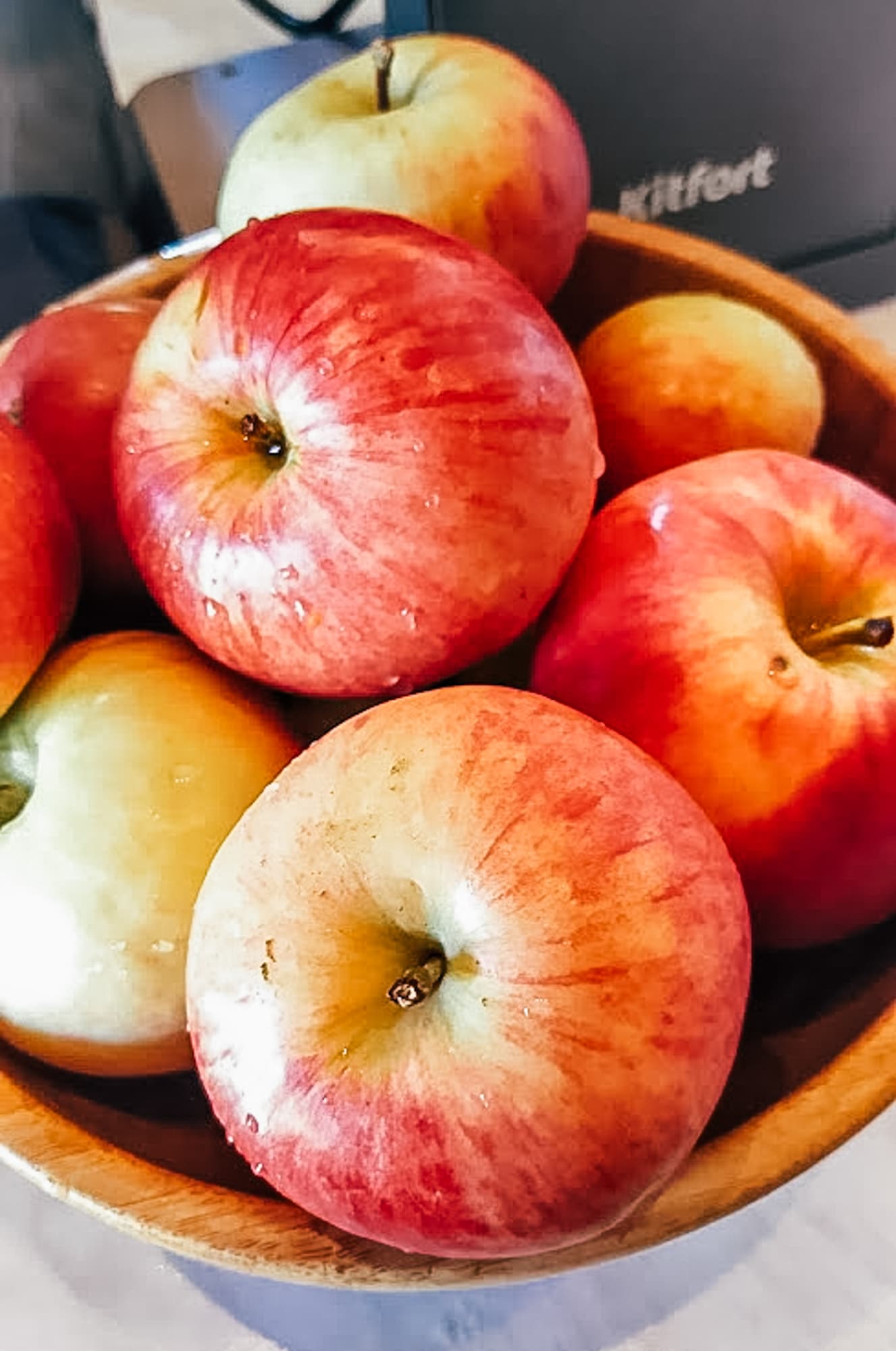 Мы взяли ровно килограмм очень сочных ранних яблок и нарезали их на четвертинки.