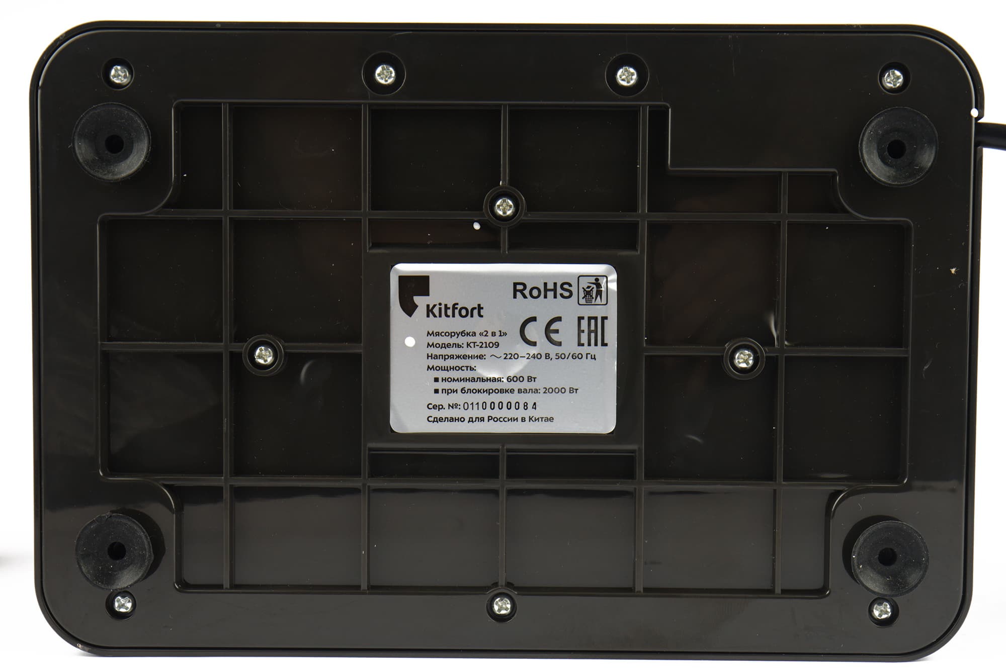Перед первым включением Kitfort KT-2109 следует удалить все упаковочные материалы и наклейки, затем протереть корпус влажной тканью, а съемные части прибора промыть в теплой воде с моющим средством. Перед сборкой все аксессуары нужно высушить. Мы заодно смазали нож и решетки растительным маслом во избежание коррозии.