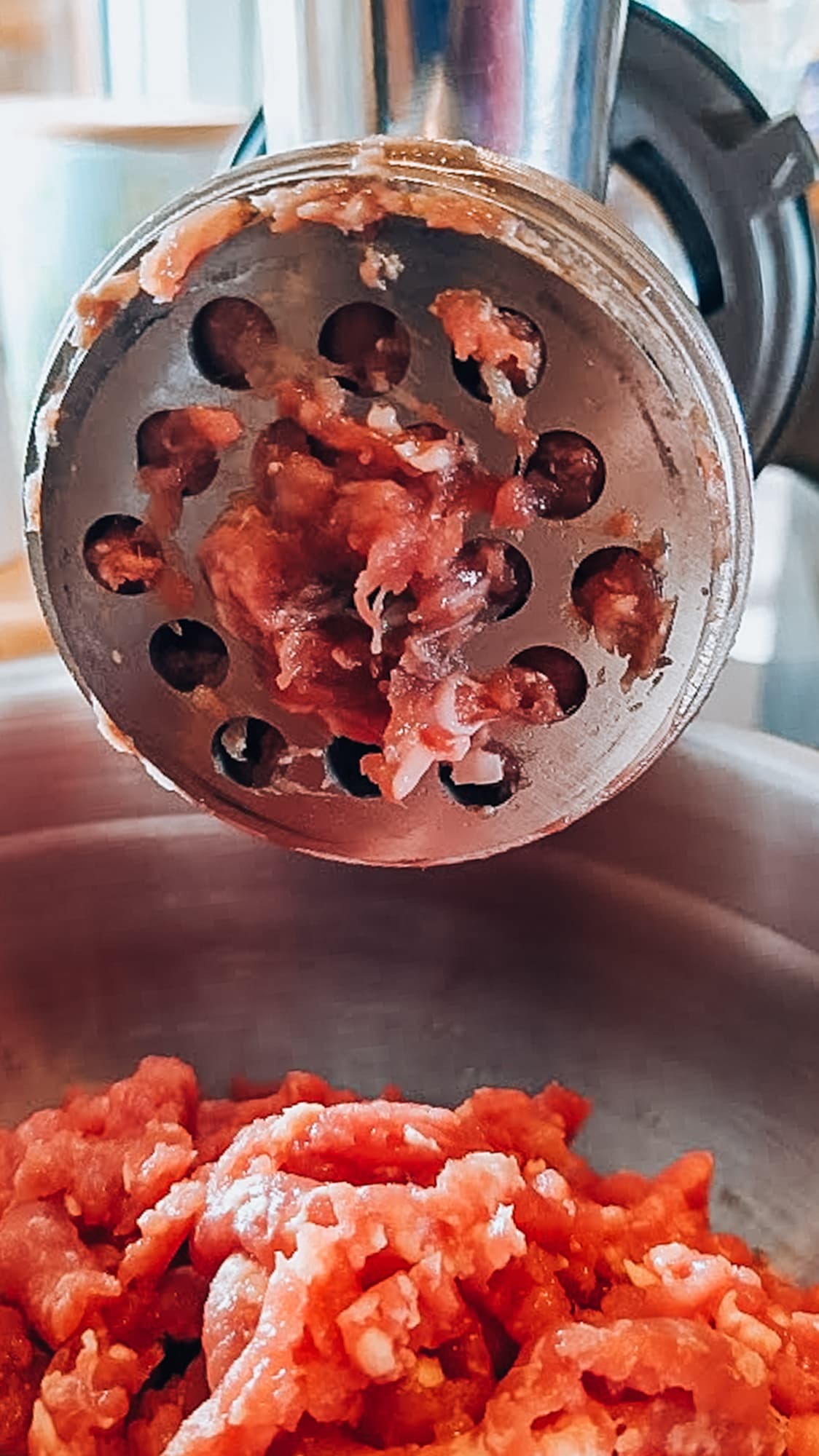Из центра решетки торчали шматки мяса, которые так и не перемололись. Так что мы открутили гайку и посмотрели, что мешало процессу.
