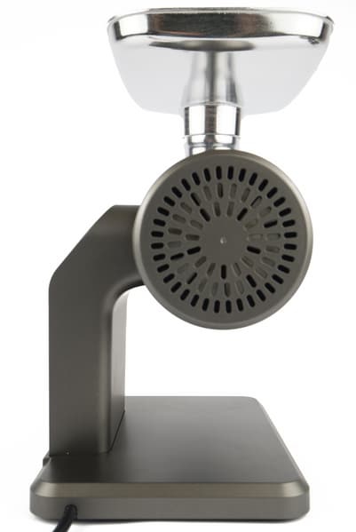 Мясорубочная часть прибора стандартная: силуминовая горловина, шнек, несколько стальных решеток, нож и кольцевая гайка. Все элементы выполнены аккуратно, без следов шлифовки, отливки или облоя, и соединяются на раз-два, крепко завинченная гайка легко снимается благодаря упорам.