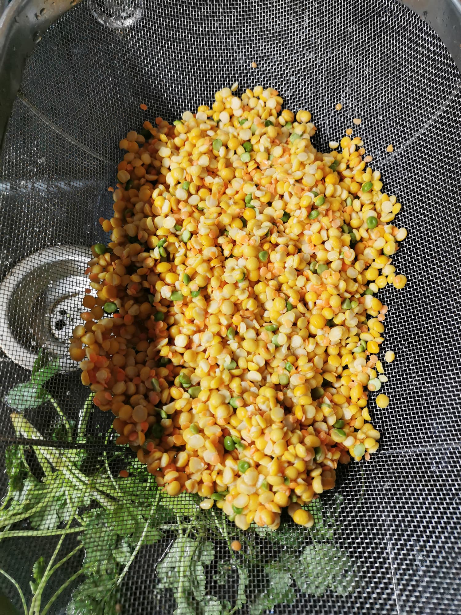 Смесь бобовых мы хорошенько промыли и дали воде стечь.