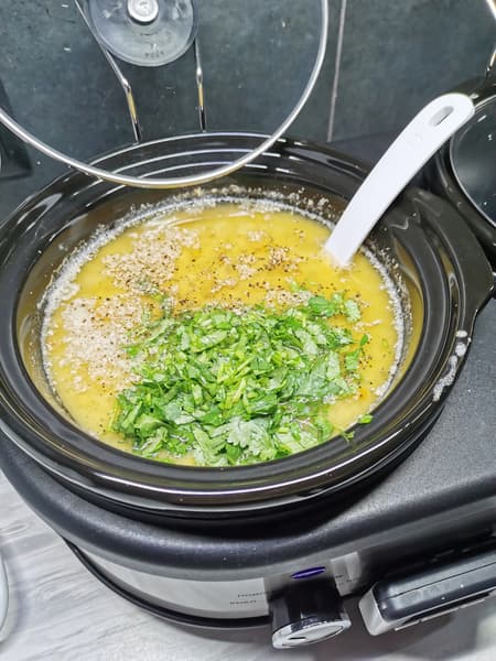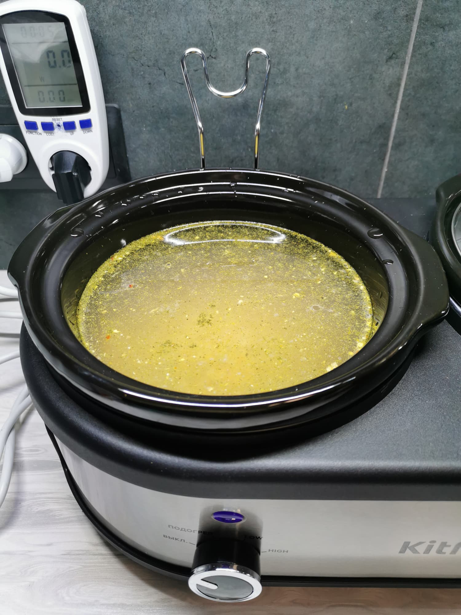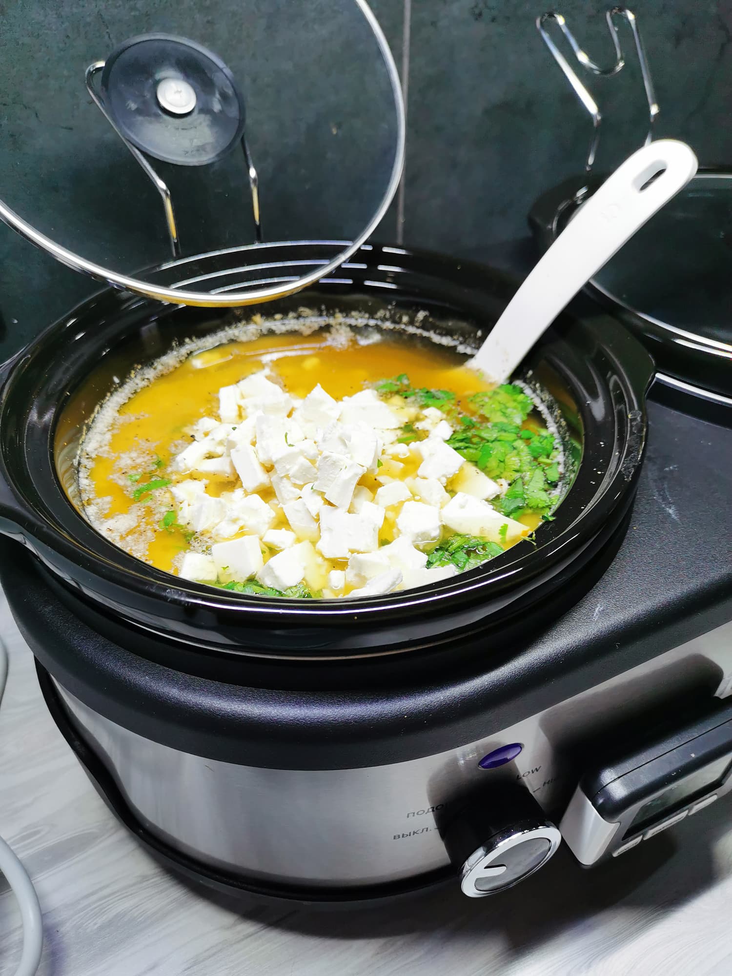 После чего отправили суп вариться в течение 5,5 часов в режиме «High».