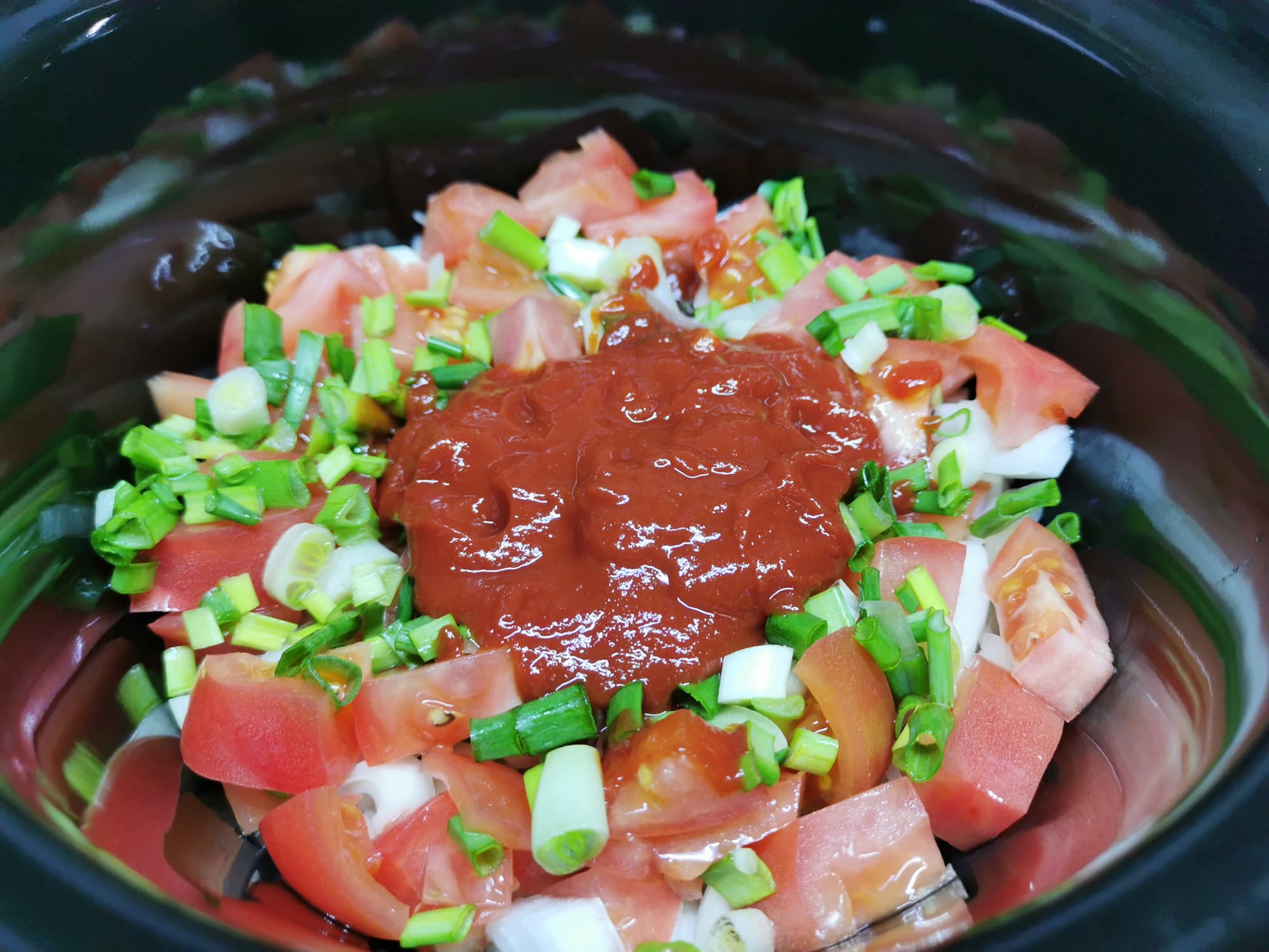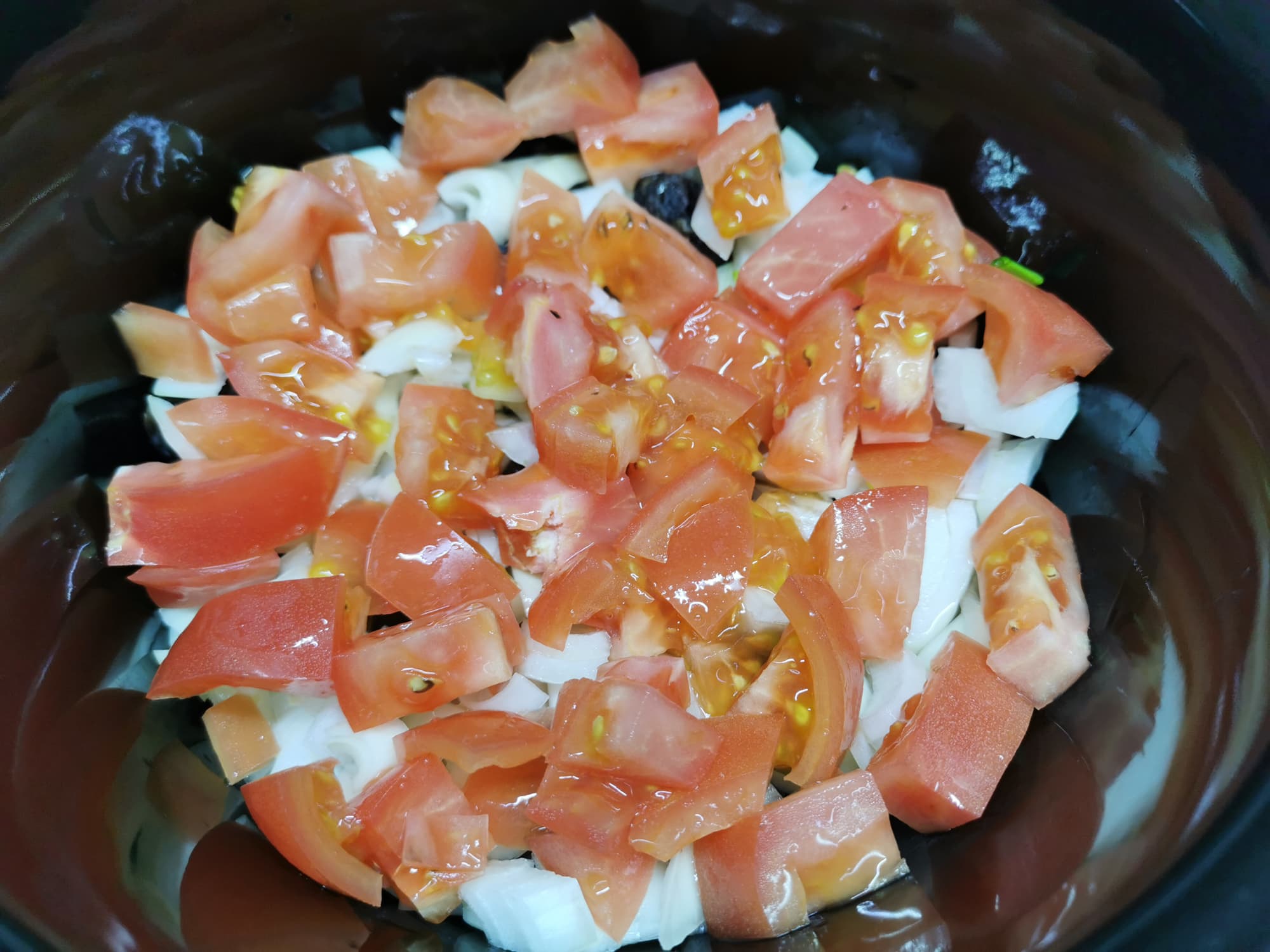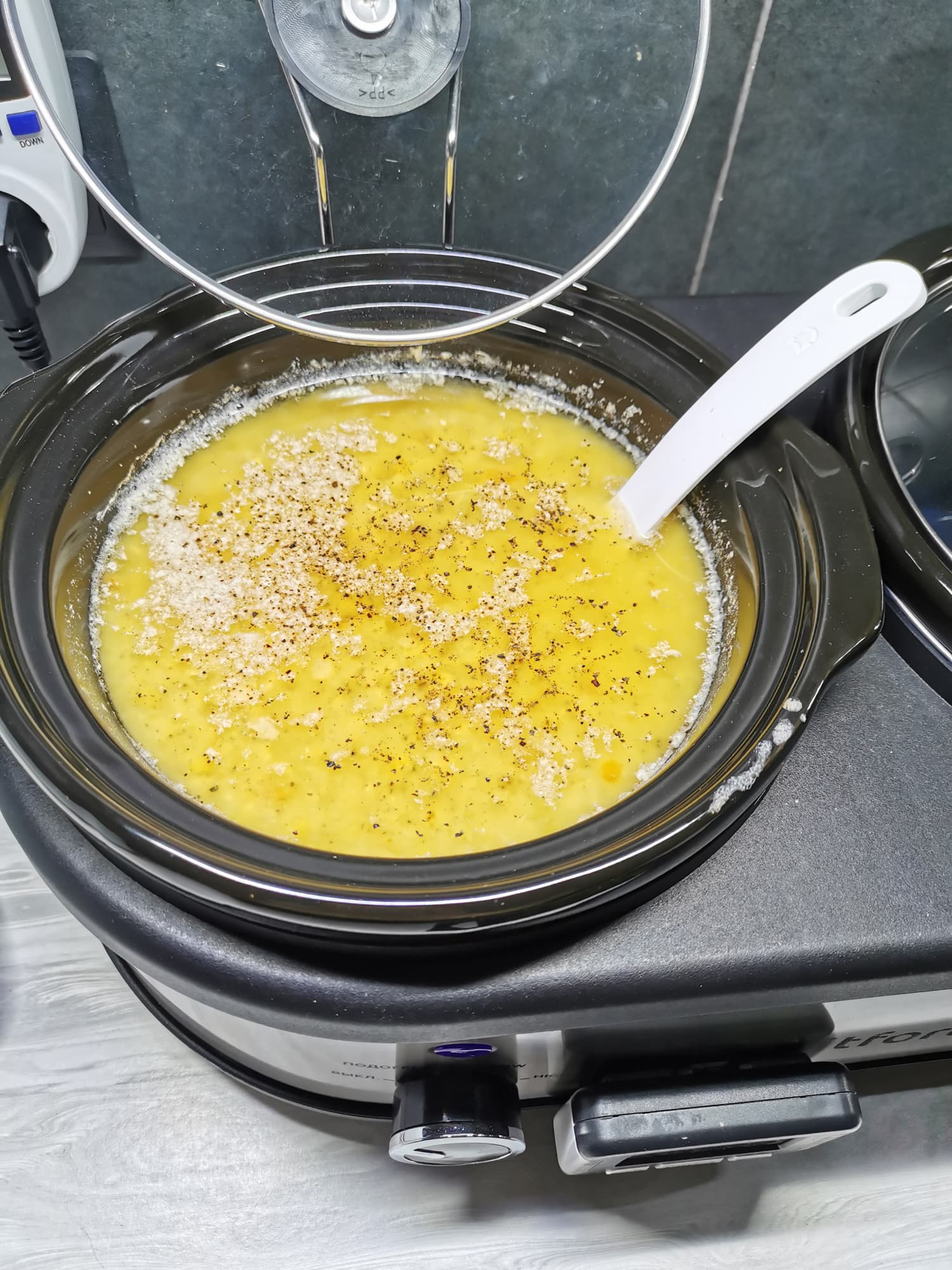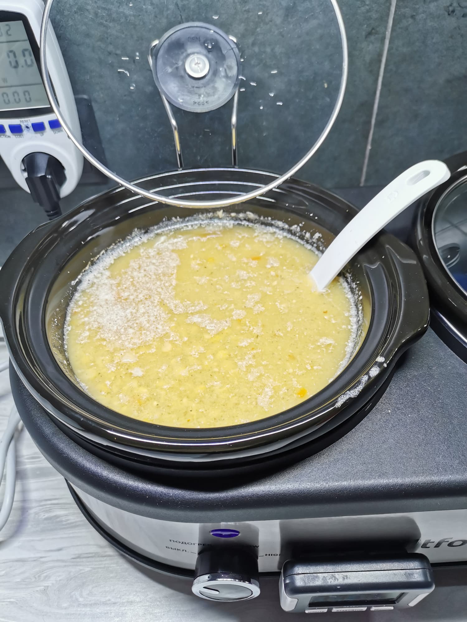 Далее мы тщательно перемешали содержимое кастрюли, накрыли ее крышкой и готовили в режиме «High» 3 часа.