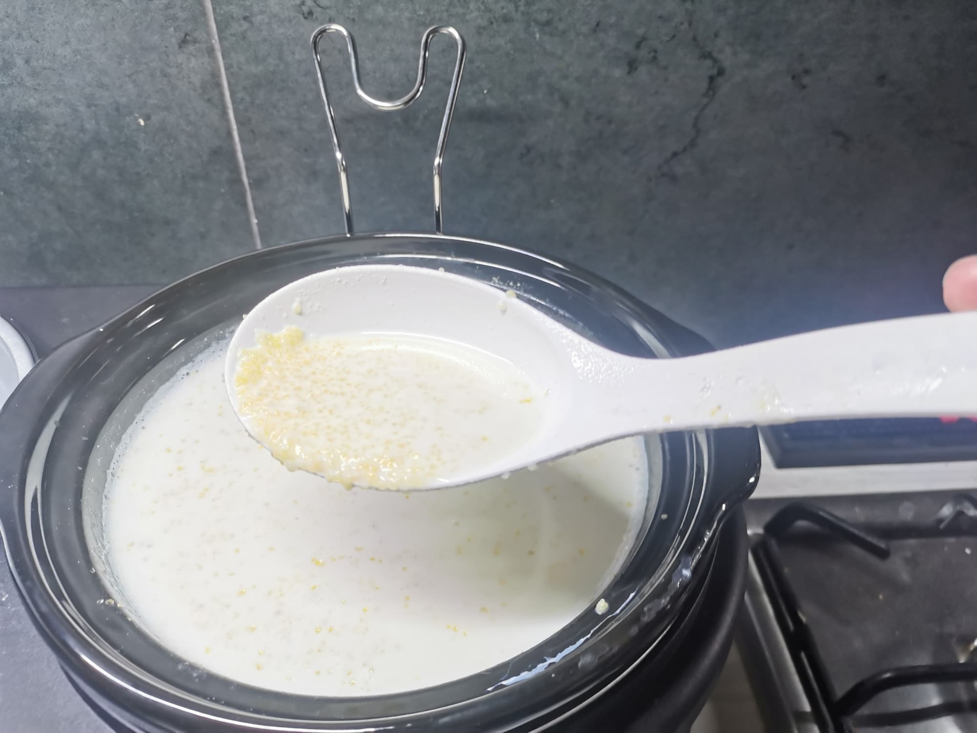 Смеем предположить, что где-то в рецепте все же допущена ошибка и при готовке стоит добавлять гораздо меньшее количество молока или в 2 раза больше крупы.