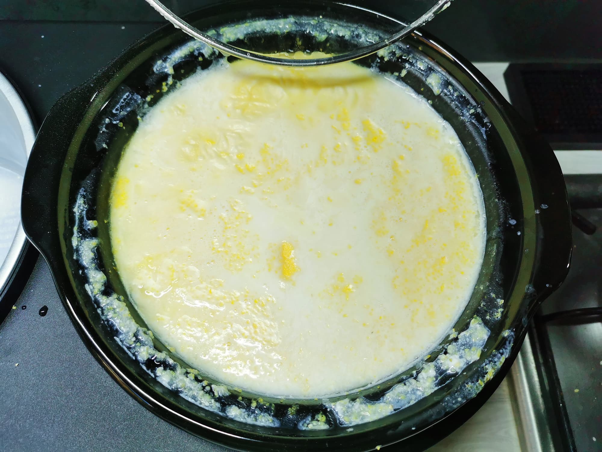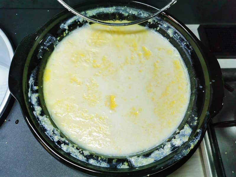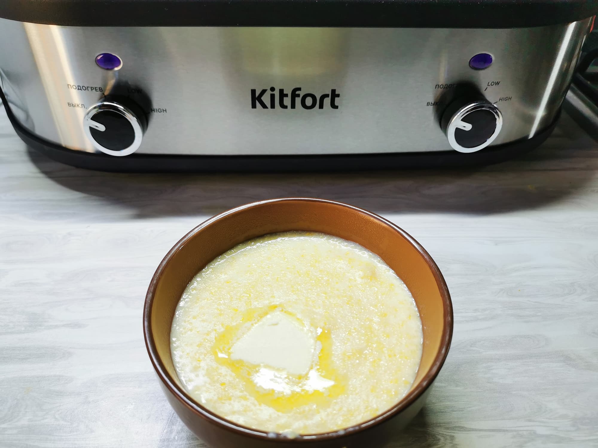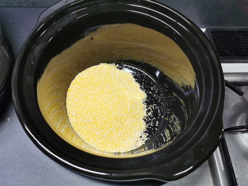 Нашим первым тестом стала кукурузная каша на молоке. Для нее нам понадобились такие ингредиенты: 600 мл холодной воды, 1300 мл молока, 3 столовые ложки сахара, 100 мл кукурузной крупы, 1 чайная ложка соли и 30 граммов сливочного масла.