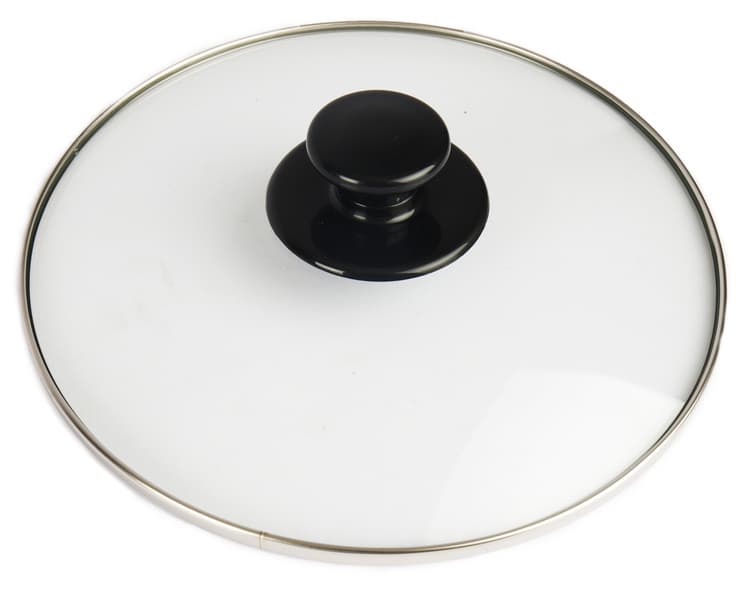Крышки сделаны из прозрачного стекла и имеют металлический ободок по периметру. В центре обеих крышек расположены накладки с удобными черными пластиковыми ручками.