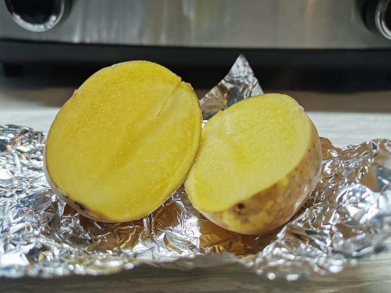 Для данного теста нам понадобилось 6 средних картофелин в кожуре и фольга.
