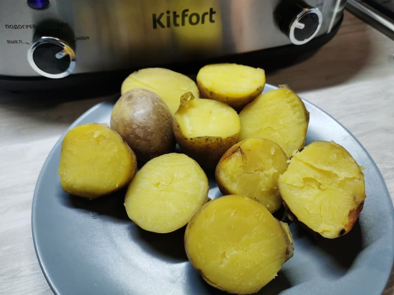 За 4,5 часа картофель стал мягким и душистым, а картофельная шкурка счищалась с него без труда.
