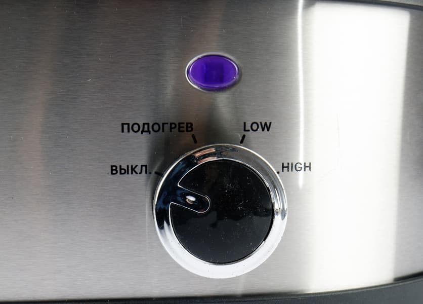 - Режим «Low» имеет мощность 100 Вт (100+100 для двух чаш) и рекомендуется для длительного томления в течение 4—12 часов