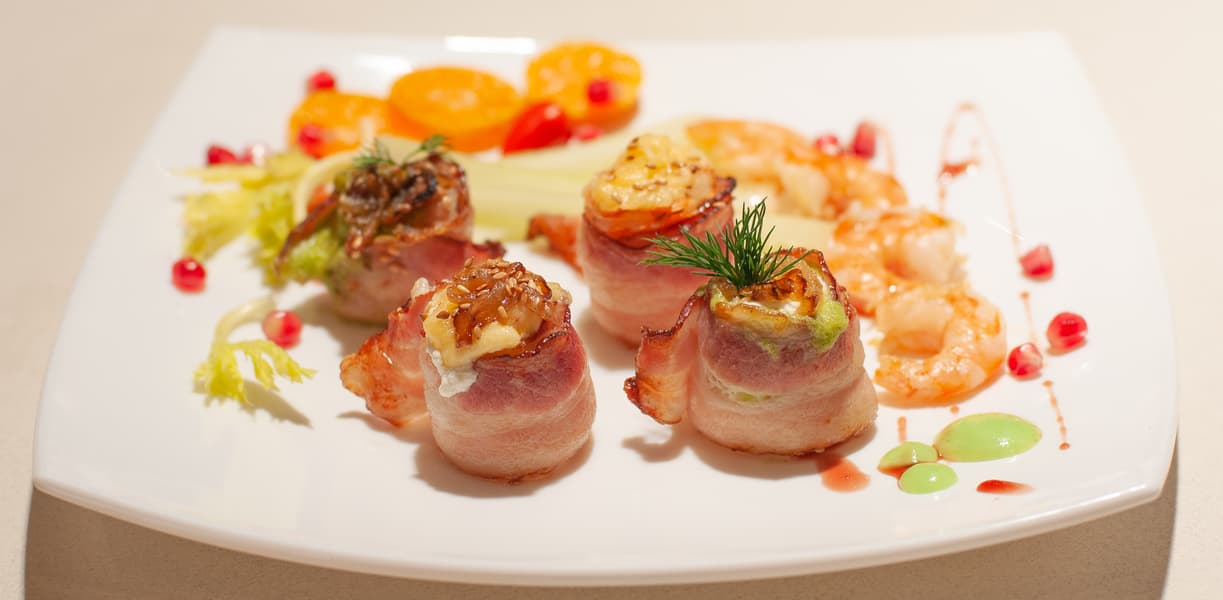 Рисовые роллы с беконом и креветками