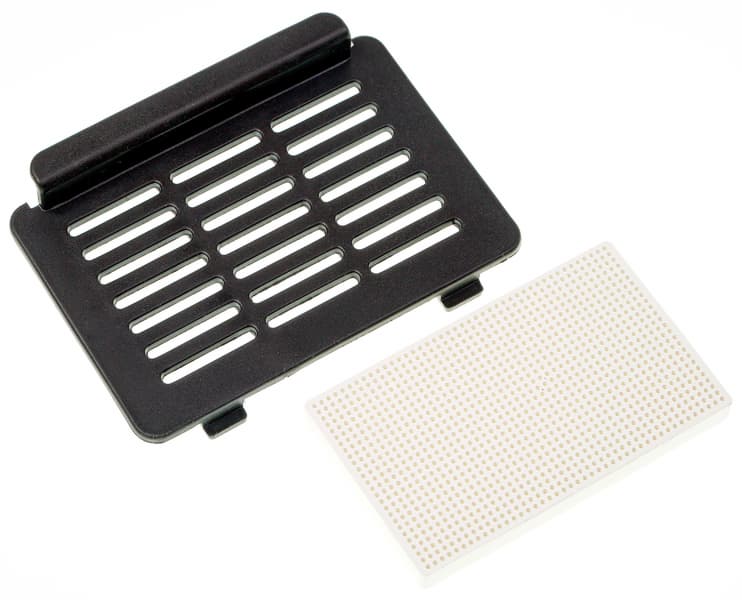 Сзади прибора находится пластиковый воздухозабор с керамическим фильтром внутри, снять его и вынуть фильтр довольно просто.