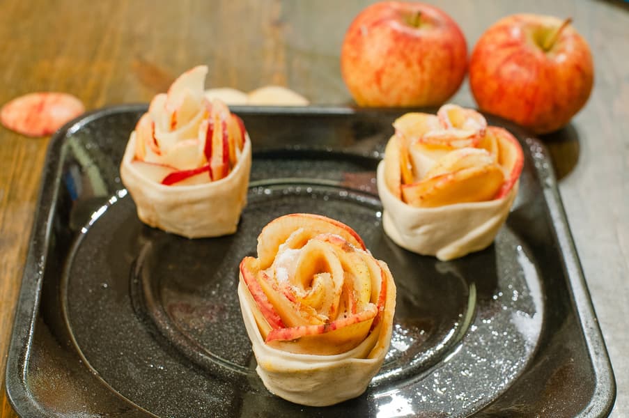 В качестве основы для выпечки мы использовали готовое замороженное дрожжевое и бездрожжевое слоеное тесто нижнего ценового сегмента разных производителей. На начинку мы взяли яблоки, мандарины, сосиски и шоколад.