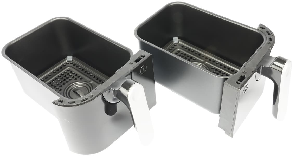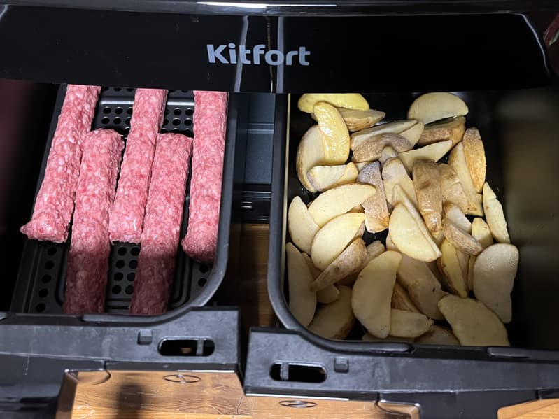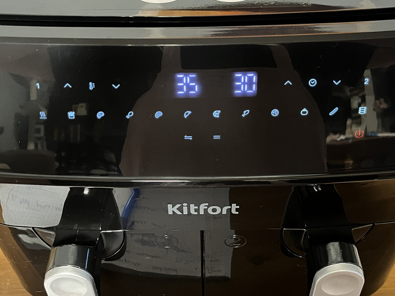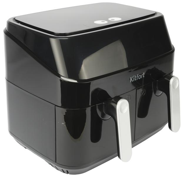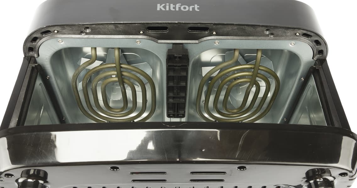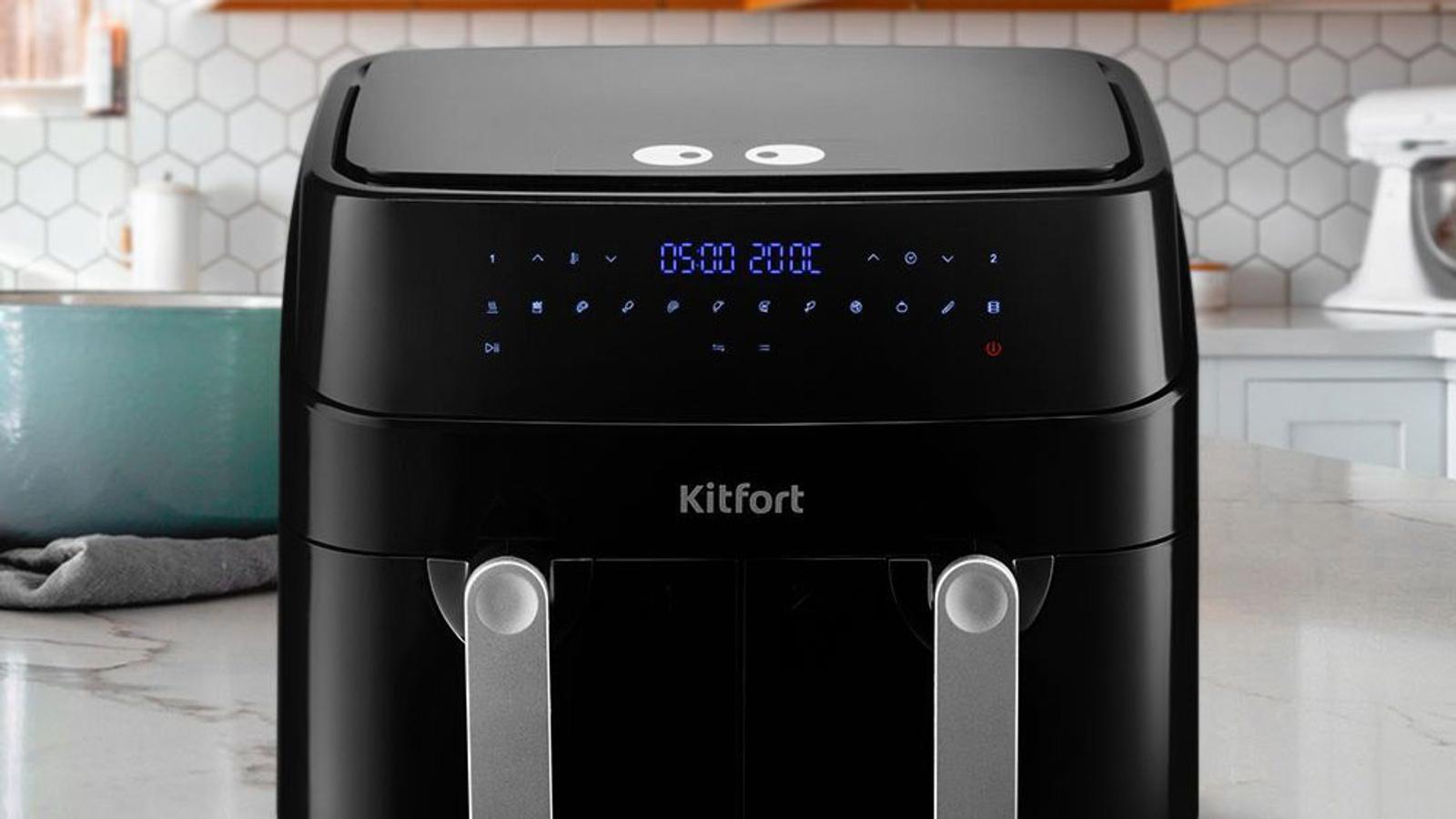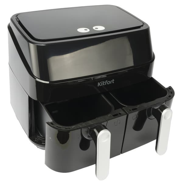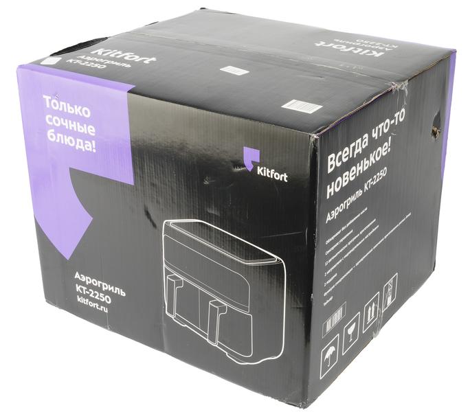 Компания Kitfort заинтересовала нас аэрогрилем КТ-2250 — кухонным прибором с сенсорным управлением и необычным дизайном, имеющим аж два отсека для приготовления пищи общим объемом 9 литров. Производитель обещает многофункциональность прибора, равномерность прожарки в каждом из лотков, а также легкий уход.