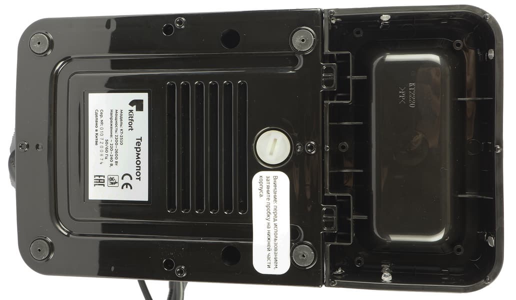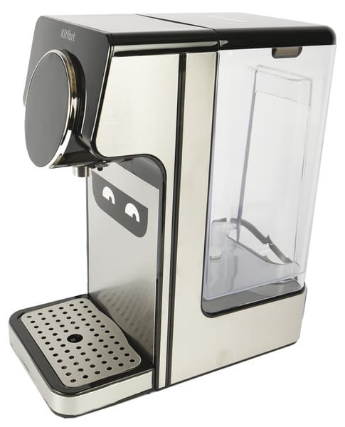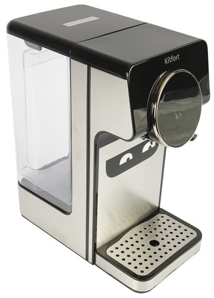 Kitfort KT-2510 напоминает с виду бюджетную кофеварку и это не простое совпадение. Прибор представляет собой не традиционный термопот с периодическим подогревом воды в большом теплоизолированном баке, а проточный нагреватель, выдающий указанный пользователем объем нужной температуры. Бойлерные кофемашины работают по такому же принципу, что и объясняет внешнее сходство.