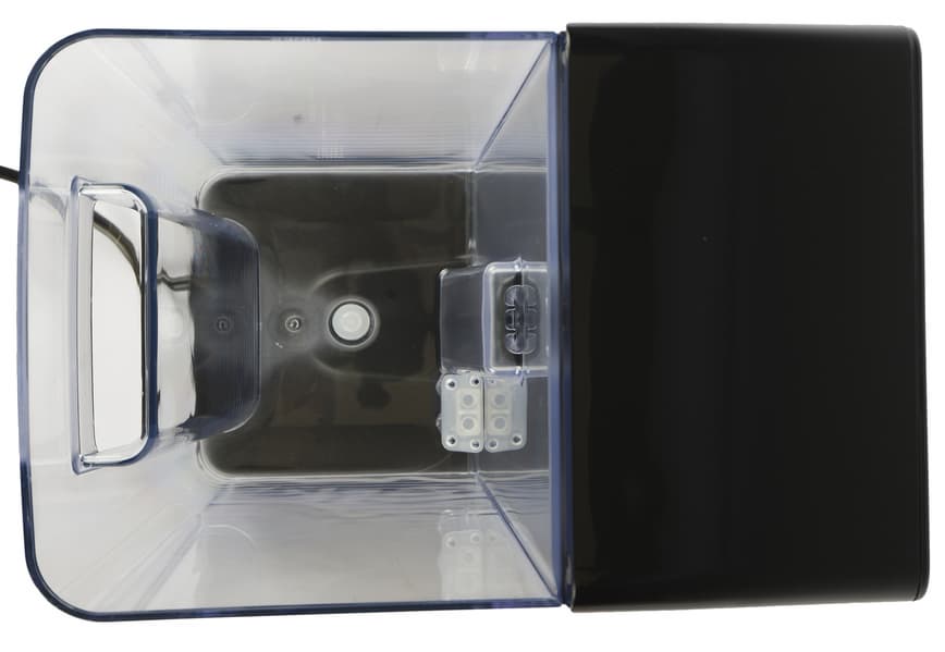 Резервуар, расположенный в задней части устройства, вмещает 2,7 литра. Прозрачные пластиковые стенки емкости позволяют без труда контролировать уровень жидкости. Сбоку на них белой краской нанесены метки объема: 0,5, 1,0, 1,5, 2,0, 2,5 и 2,7 л.
