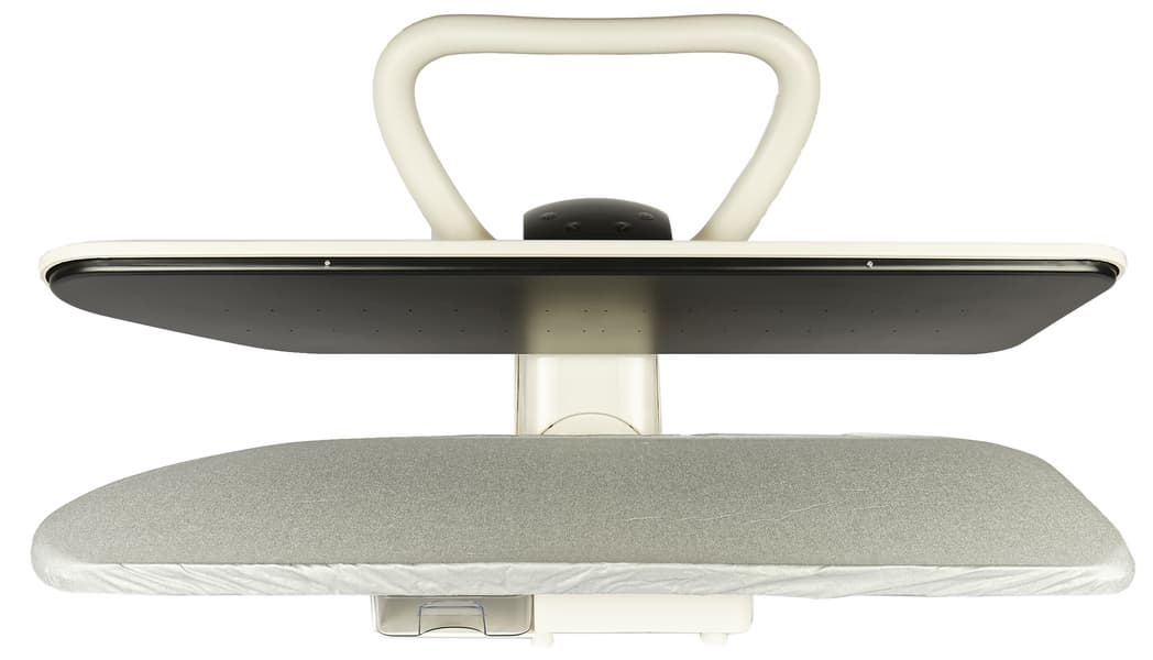 Нижняя рабочая панель — это гладильная доска. Она также металлическая. На ней закреплен поролоновый уплотнитель, а сверху надет съемный чехол из термостойкой ткани. Размер гладильной доски 99×28 см.