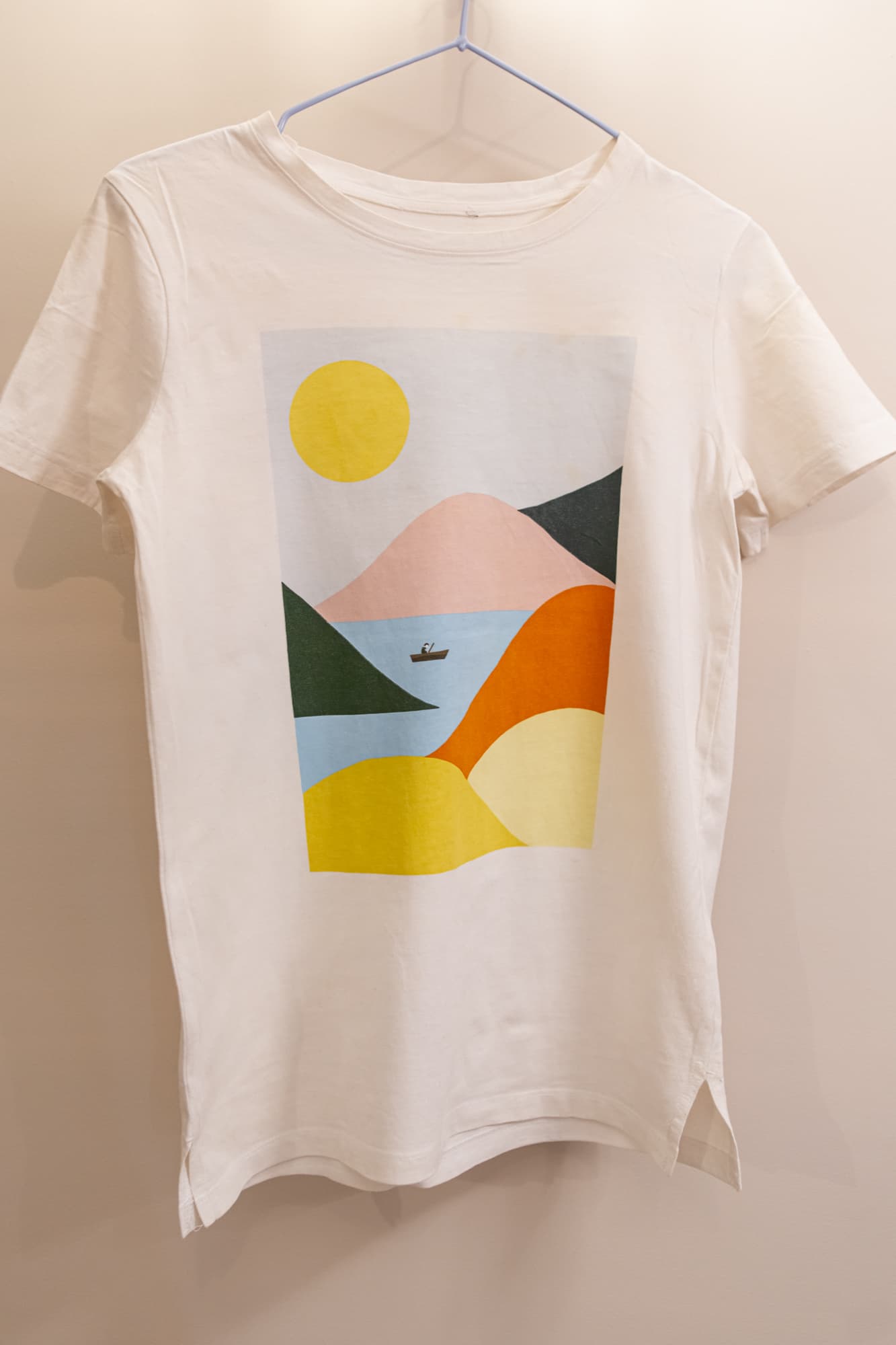 Итак, по принципу наволочек, футболке потребовалось 4 движения с предварительным 5-секундным отпариванием. Принт не пострадал, футболка выглядит почти опрятно. «Почти» — потому что короткие рукава и местами швы по бокам никак не удавалось уложить так, чтобы не осталось заломов. Подушечка из комплекта нам не помогла, возможно не хватает сноровки. В сравнении с обработкой ткани утюгом, мы потратили на изделие больше времени, чем обычно.