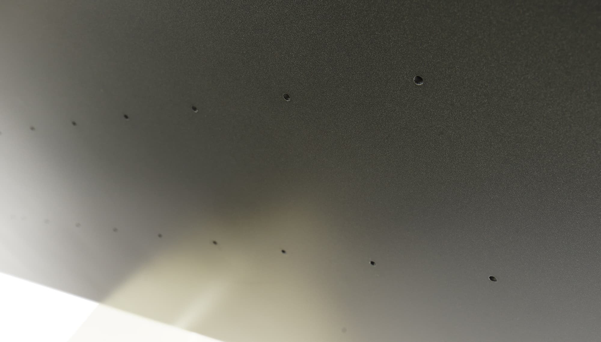 Дно оснащено массой вентиляционных отверстий, металлической планкой для крепления пресса на фирменной подставке, а также пятью пластиковыми ножками высотой 1,5 см и наклейкой с технической информацией.