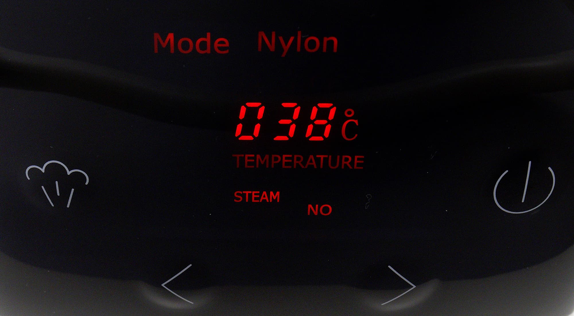 На кнопках нет подписей, только узнаваемые пиктограммы. Левая верхняя отвечает за включение и отключение подачи пара. Две нижние кнопки-стрелки предназначены для выбора режимов, а правая верхняя включает и выключает прибор.