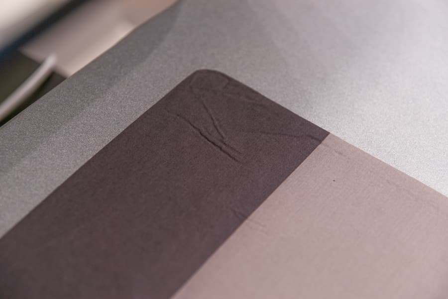 Сначала попробовали действовать без пара. Одним-двумя 15-секундными прижатиями панели мелкие заломы мы убрали, но от крупных не избавились.