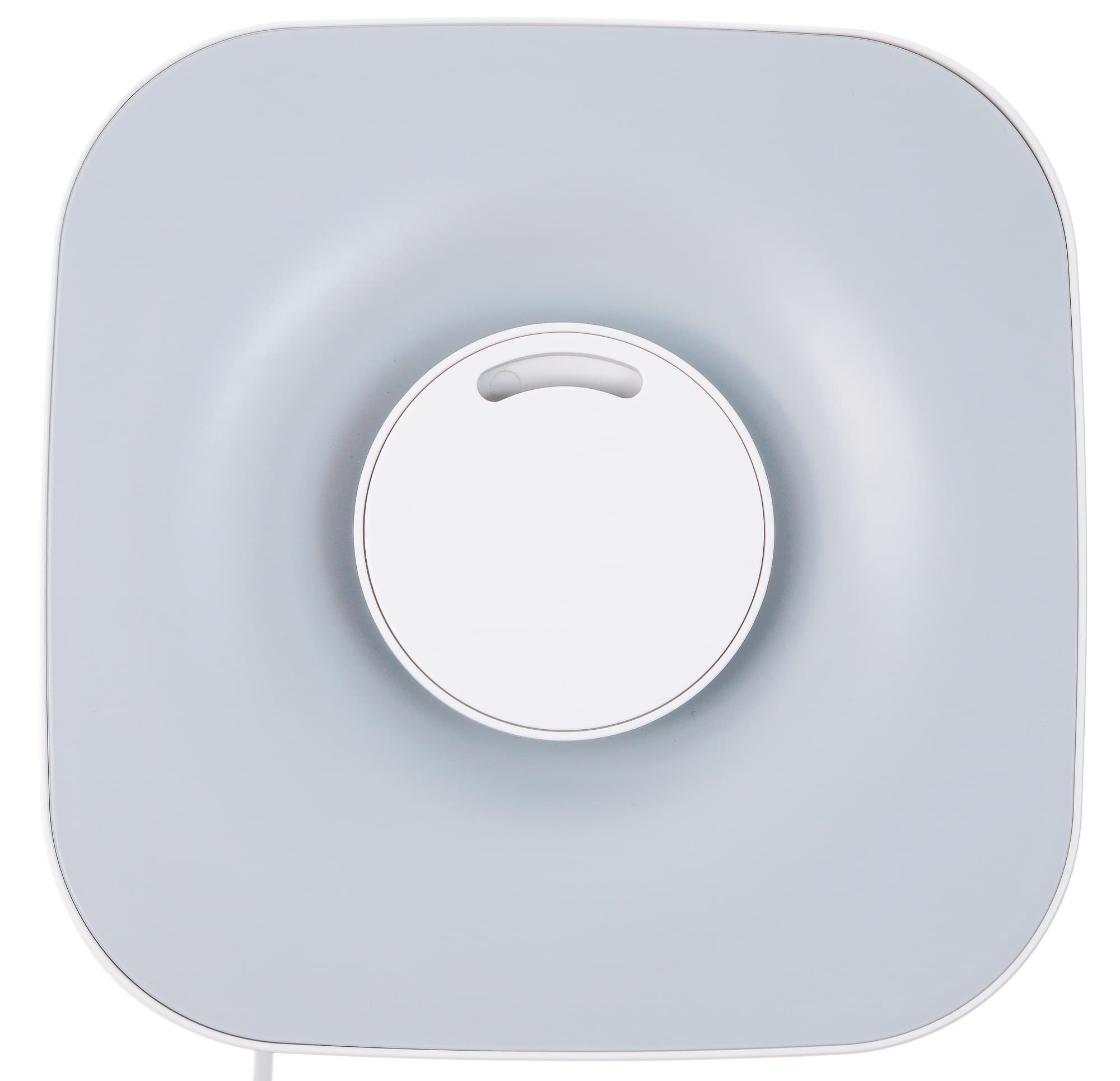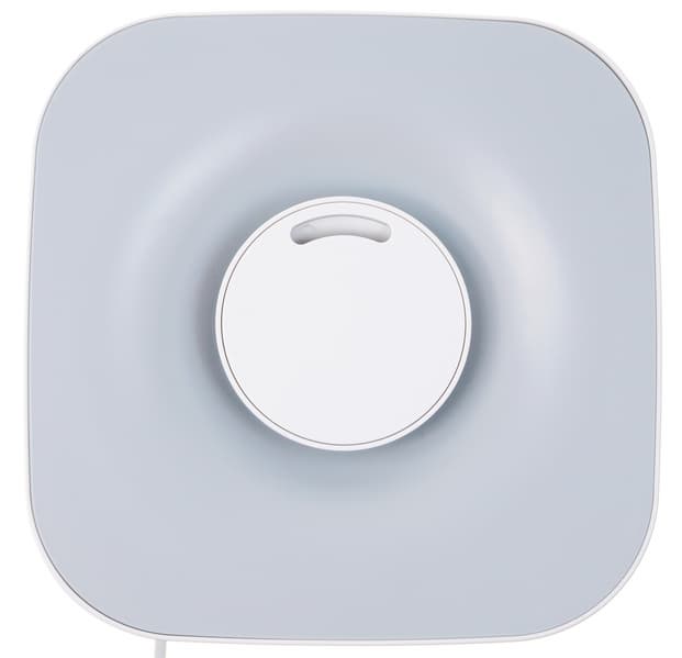 Съемная крышка бака для воды сделана из серого пластика и занимает всю верхнюю панель увлажнителя. В ее центре — круглое сопло с отверстием для выхода пара, которое может вращаться на 180°, направляя поток увлажненного воздуха в удобную владельцу сторону.