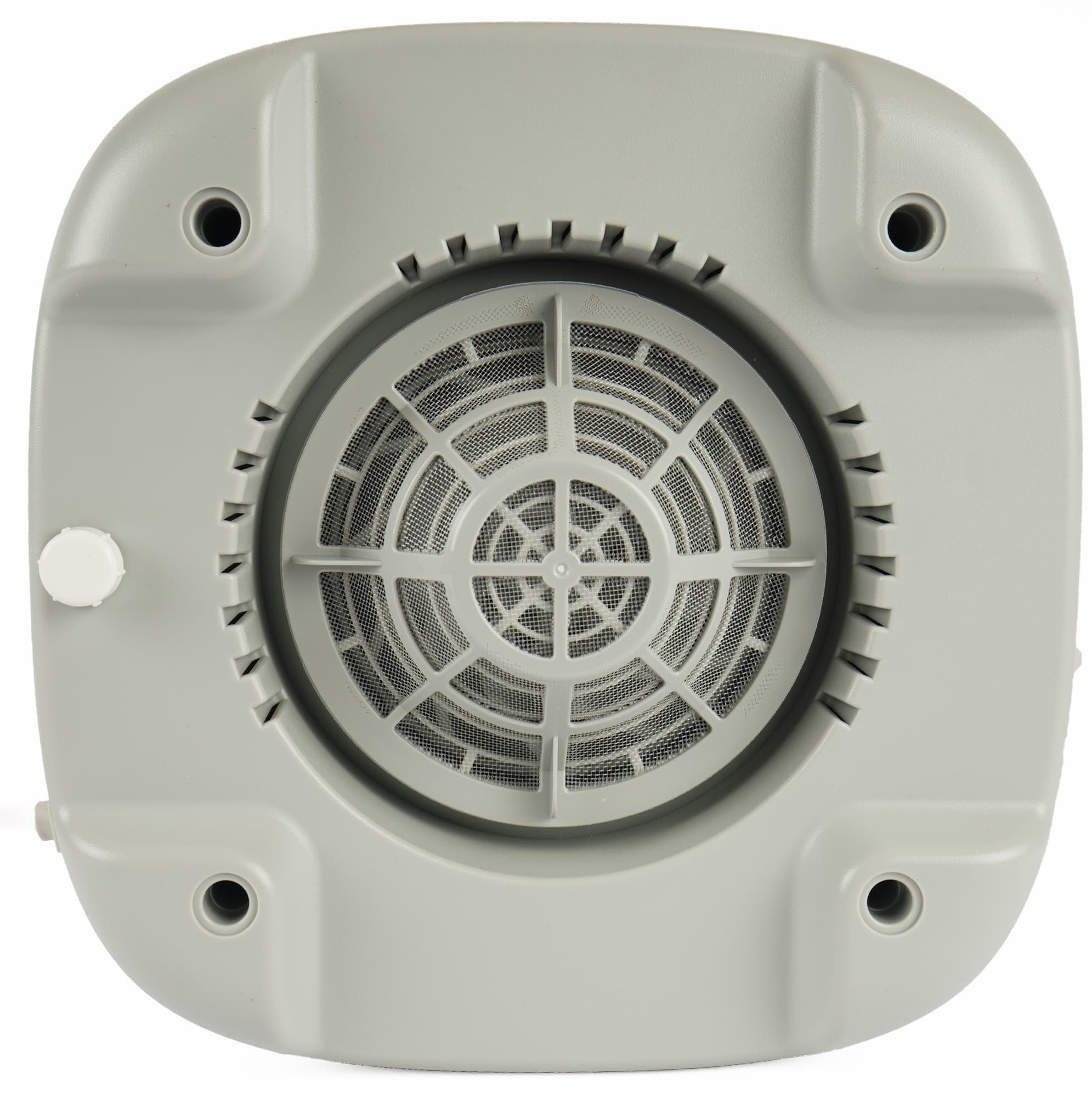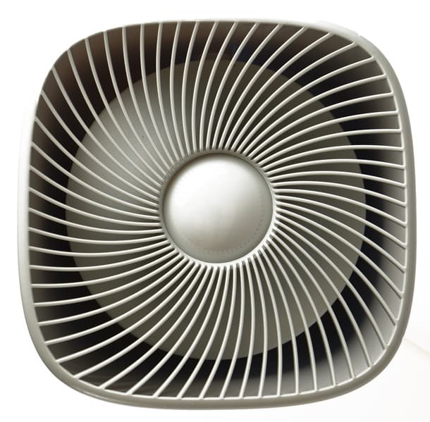 Принцип работы устройства несложен: вентилятор в основании прогоняет воздух снизу вверх через цилиндрический фильтр, частично погруженный в бак с водой. Решетка для выпуска увлажненного и очищенного потока занимает всю верхнюю крышку мойки. Под ней находится белый матовый колпак, выполняющий две функции: он защищает электронику от попадания воды и служит абажуром для лампы подсветки.
