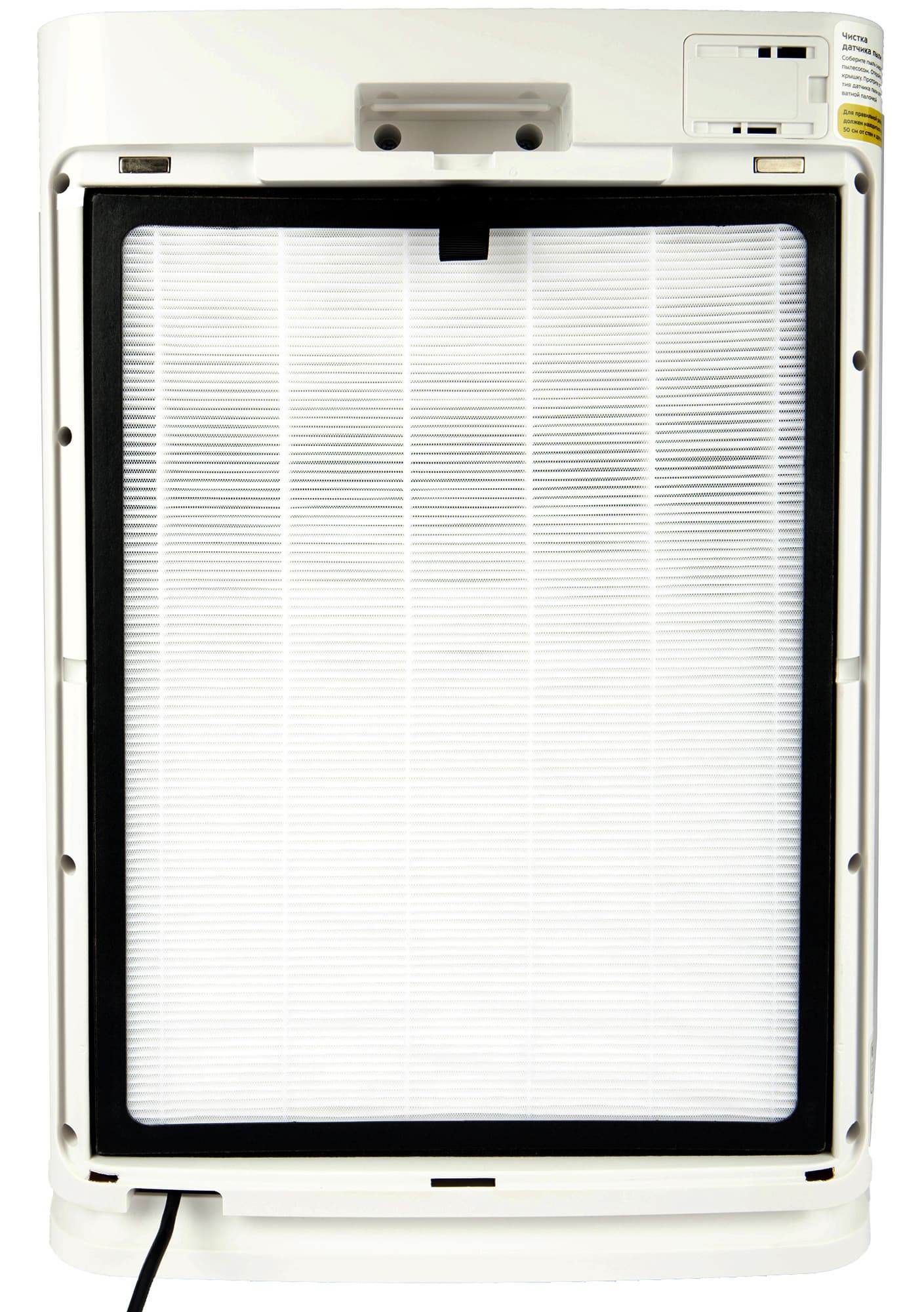 Черная выпускная решетка занимает всю верхнюю грань воздухоочистителя. Здесь же находится панель управления прибором — ее мы подробно рассмотрим чуть ниже.
