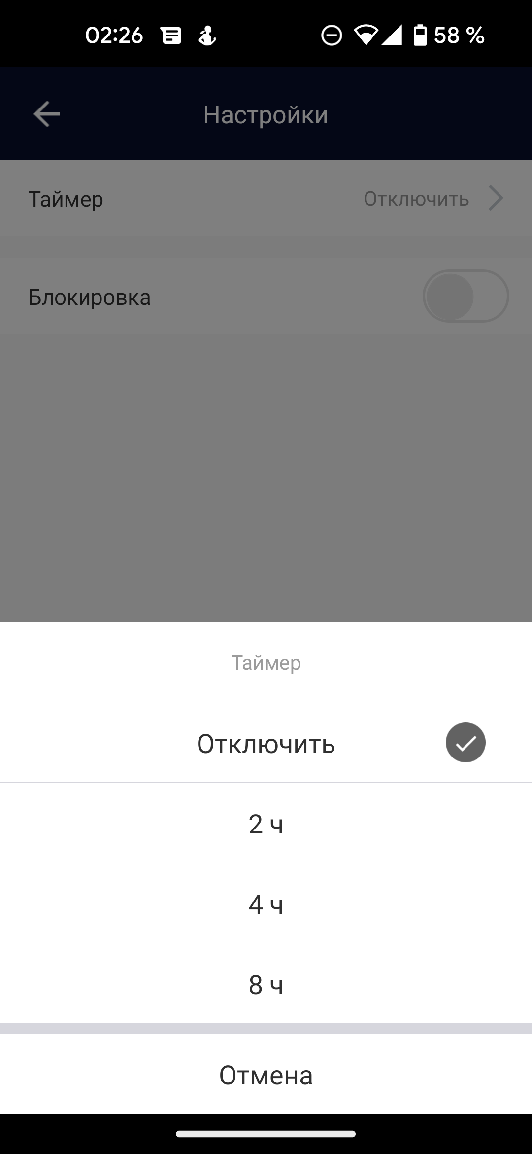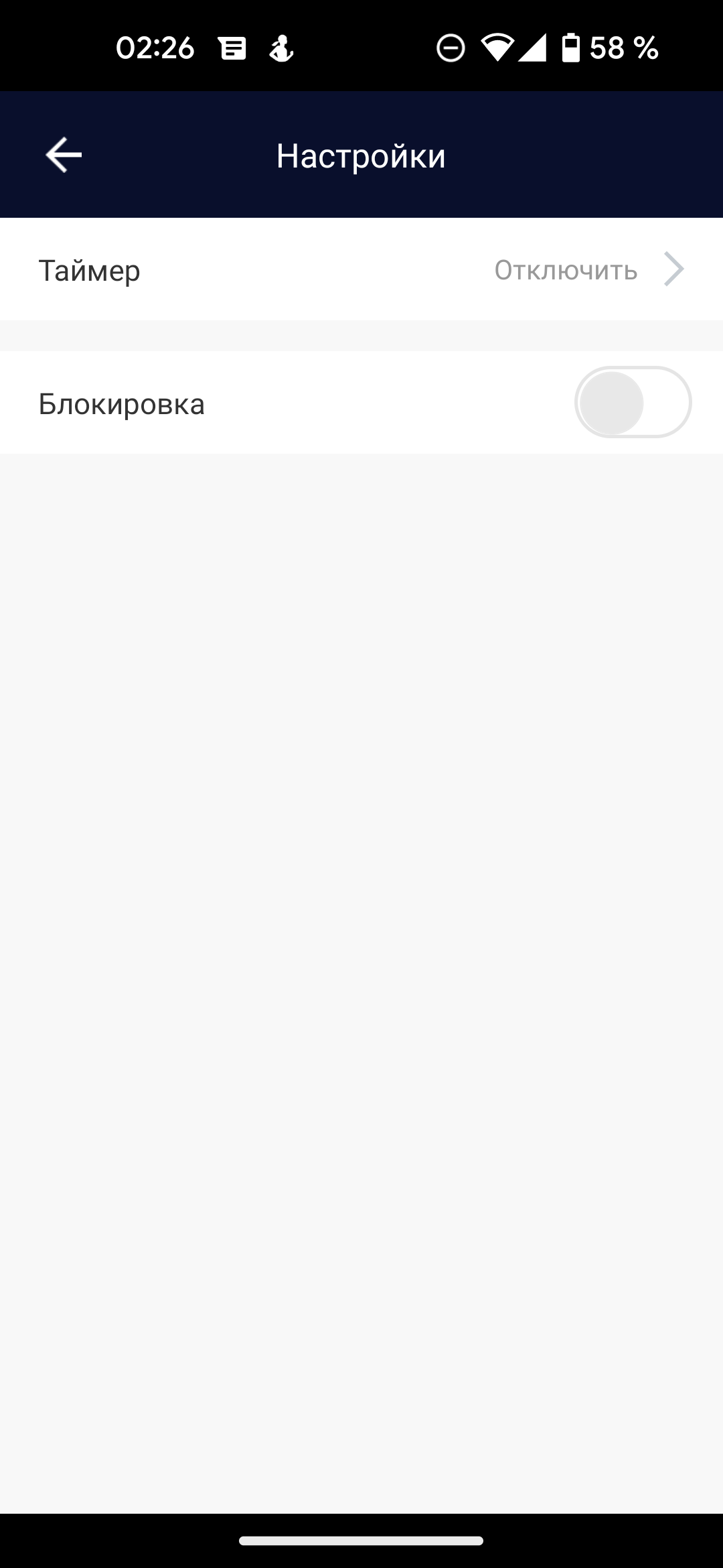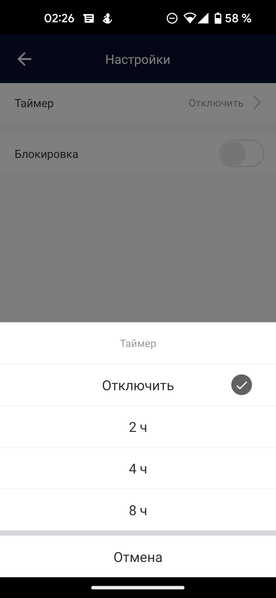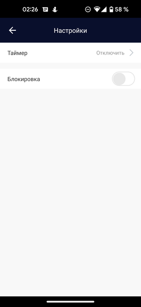 Раздел настроек аскетичен и прост: в нем можно только отключить таймер и установить режим блокировки от детей.