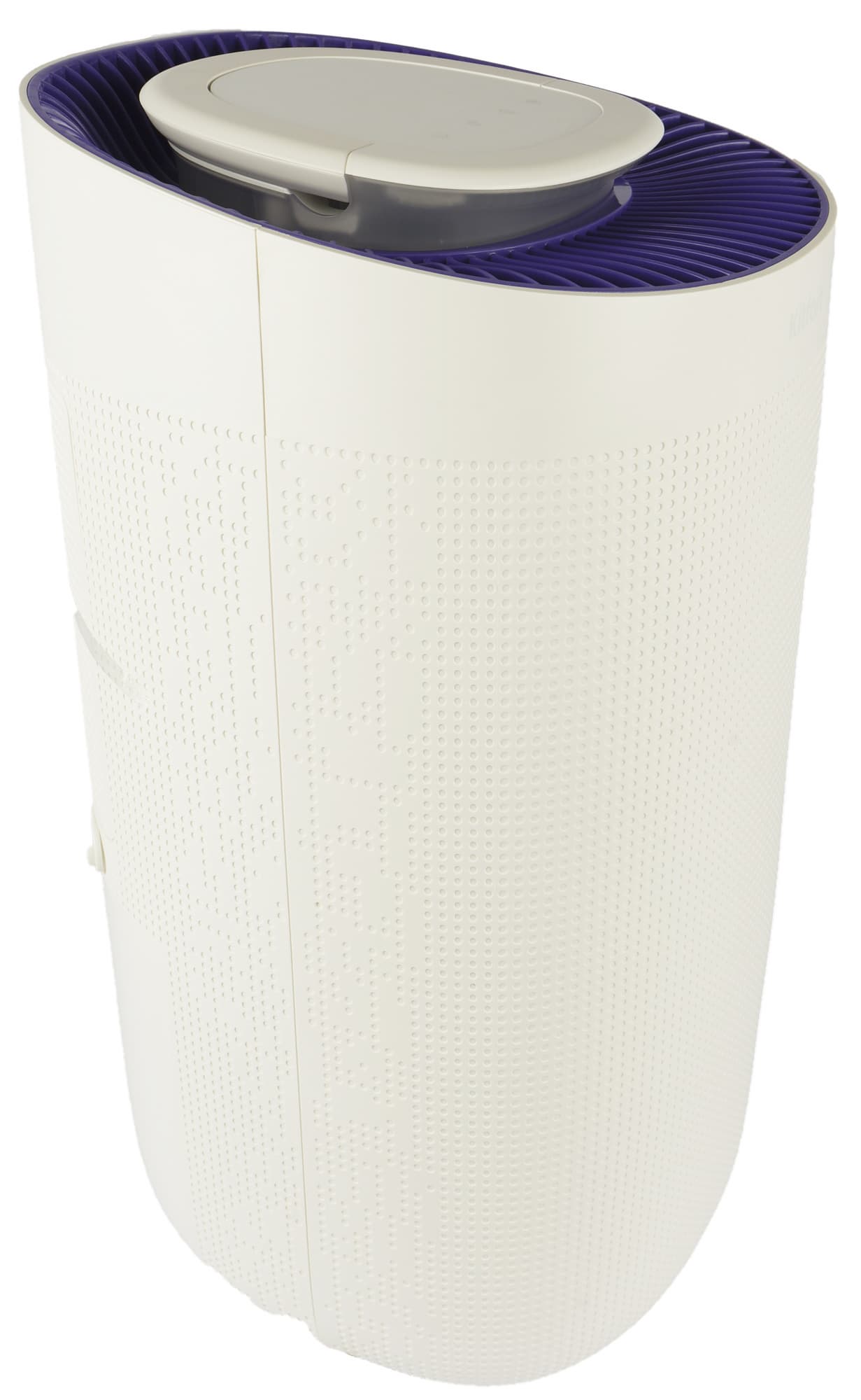 Верхняя сторона корпуса представляет собой фиолетовую выпускную решетку, над которой возвышается островок панели управления. К нему прикреплена складная ручка, облегчающая транспортировку увесистого устройства.