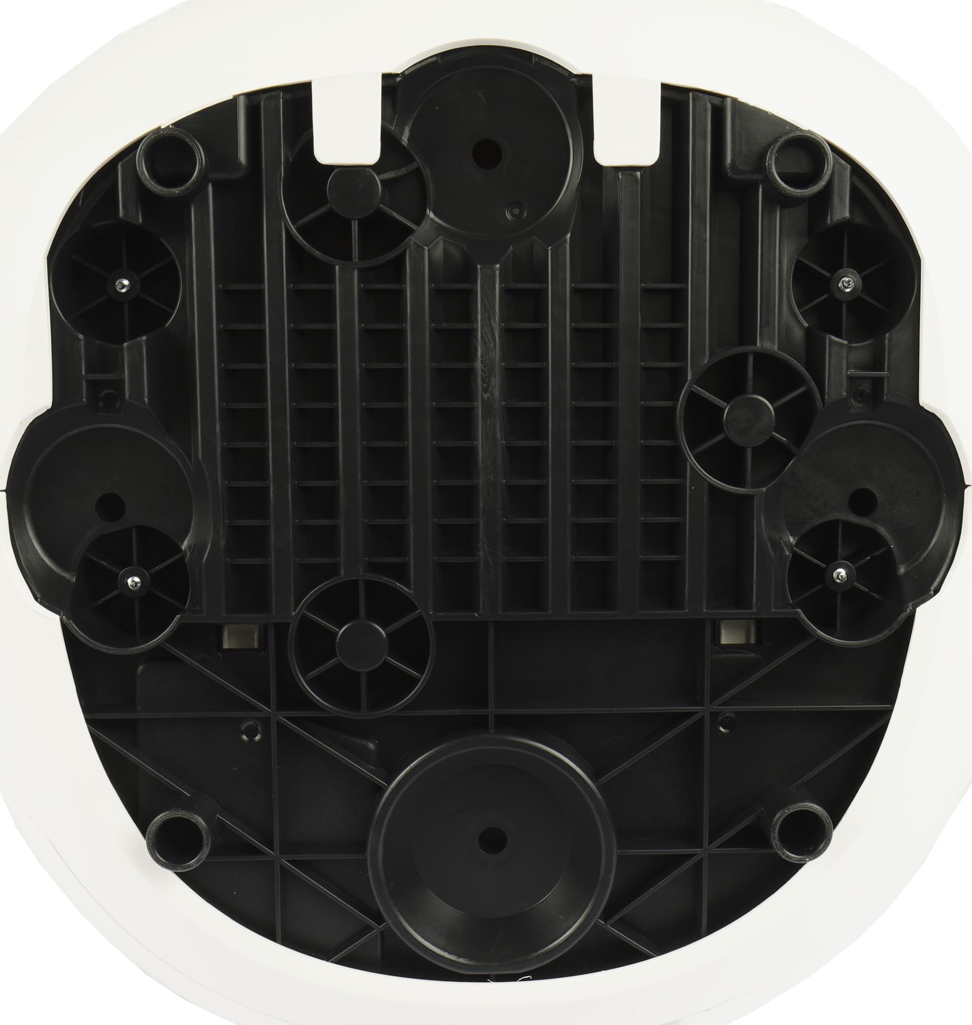 Устройство опирается на четыре простых пластиковых ножки без каких-либо накладок или подставок. На наш взгляд, здесь уместны были бы ролики, облегчающие перемещение тяжелого прибора, но об этом производитель, к сожалению, не позаботился.