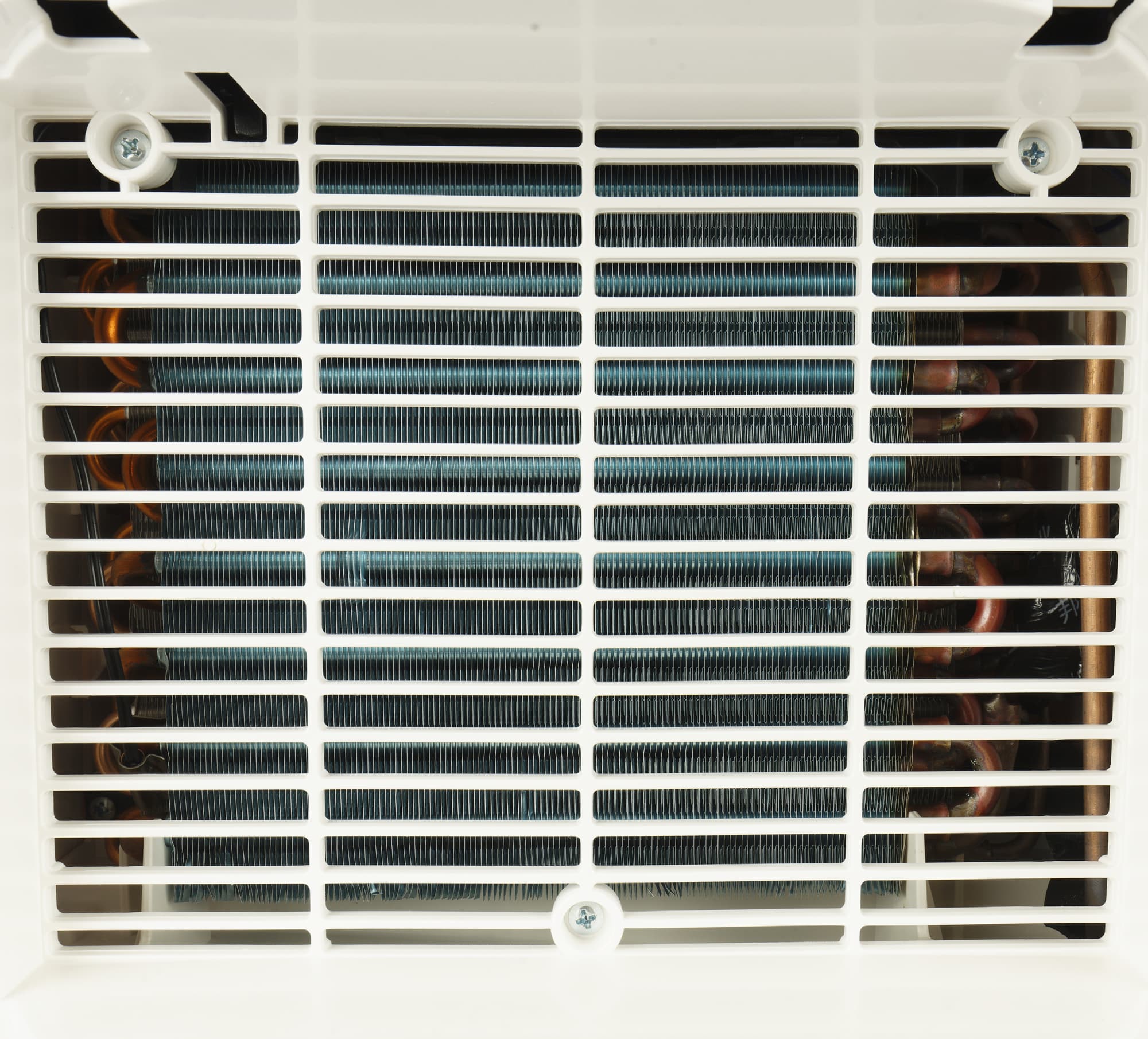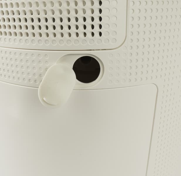 Съемная решетка воздухозабора располагается сзади. Над ней — наклейка с серийным номером и краткими техническими характеристиками осушителя. Чуть выше основной решетки есть дополнительные отверстия — под ними скрыт датчик влажности.