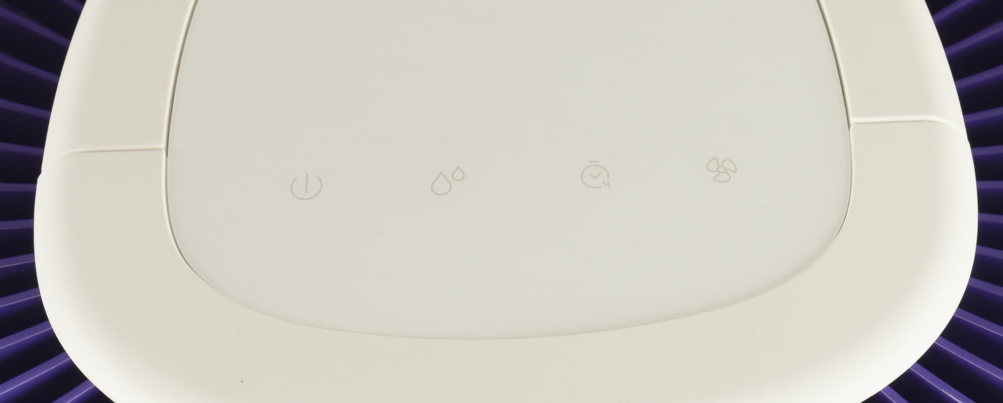 Панель управления расположена на верхней стороне корпуса осушителя. Она состоит из четырех сенсорных кнопок и светодиодных индикаторов, которые у выключенного прибора не видны.