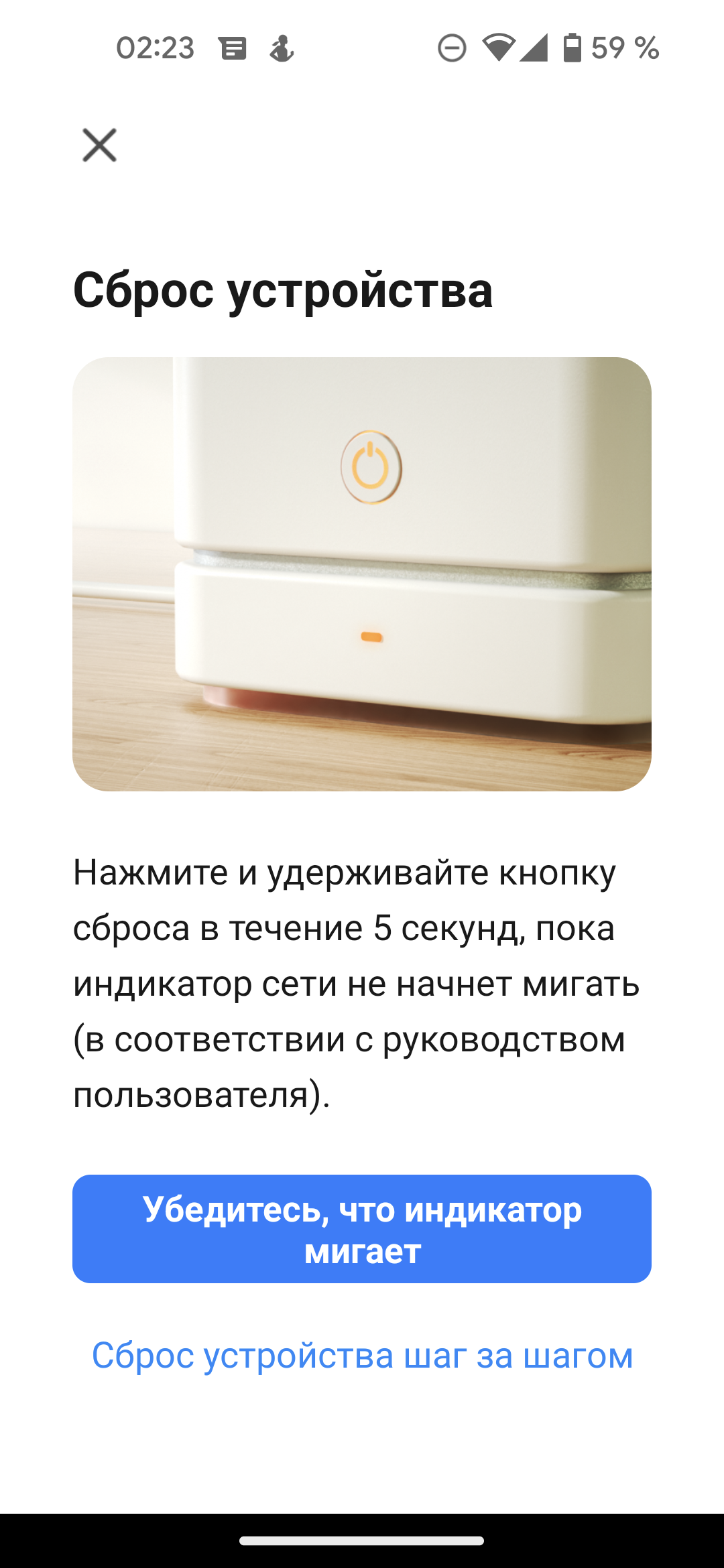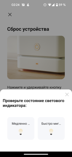 На этом этапе нас подстерегает небольшая сложность. Инструкция, выдаваемая приложением, неточна: обещанной кнопки сброса на устройстве нет. Обратившись к руководству пользователя, мы выяснили, что для активации режима сопряжения следует нажать и удерживать в течении пяти секунд кнопку «Таймер».