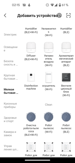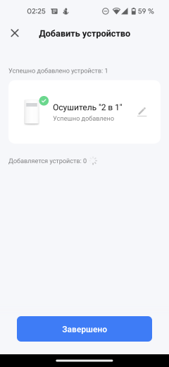 Для сопряжения устройства следует воспользоваться кнопкой «+» в правом верхнем углу экрана, выбрать нужный нам тип прибора («Осушитель Wi-Fi») в длинном списке поддерживаемых продуктов и сообщить приложению SSID и пароль от нашей беспроводной сети.