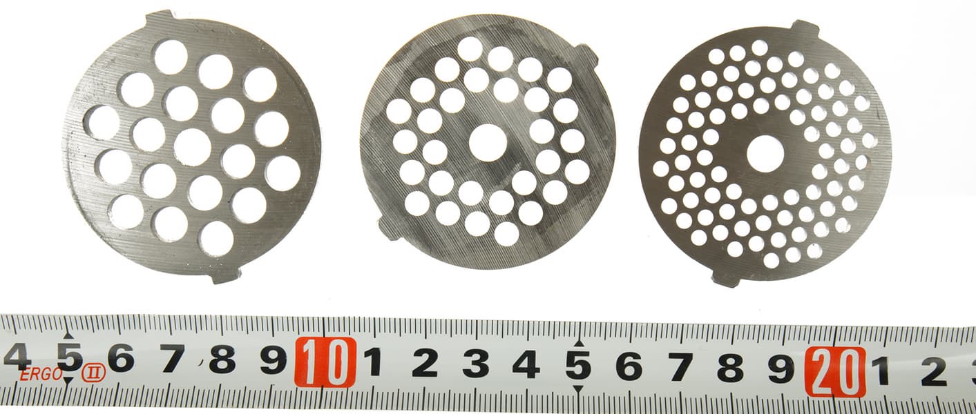 Помимо этого, в комплекте идут дополнительные аксессуары: решетки с отверстиями трех размеров (3, 5 и 7 мм), насадки для приготовления колбасок и кеббе, а также насадки для макарон, спагетти, тальятелле и печений.