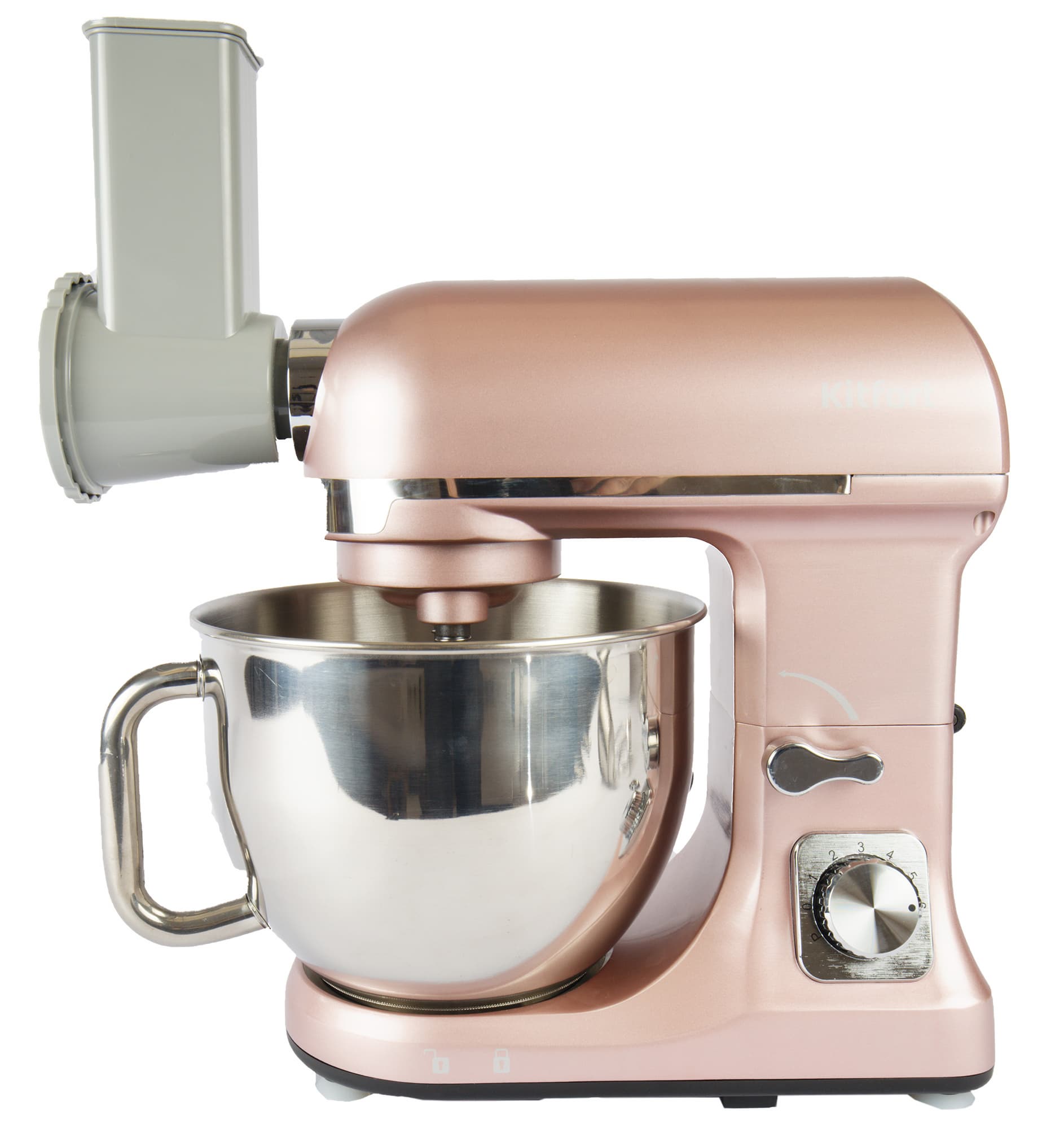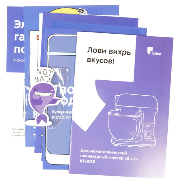 Визуальное знакомство с планетарным миксером Kitfort KT-3015 оставило у нас благоприятные впечатления. Все детали выполнены аккуратно, материалы выглядят качественными. Конструкция прибора и способы фиксации чаши и насадок привычны и не вызывают затруднений.